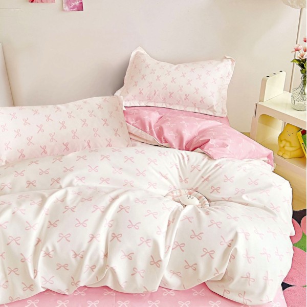 Lenjerie pat 1 PERSOANA, FINET, 4 piese, Alb-Roz, fundite, Johny Home Pucioasa, cod produs: SPR-Y60-80