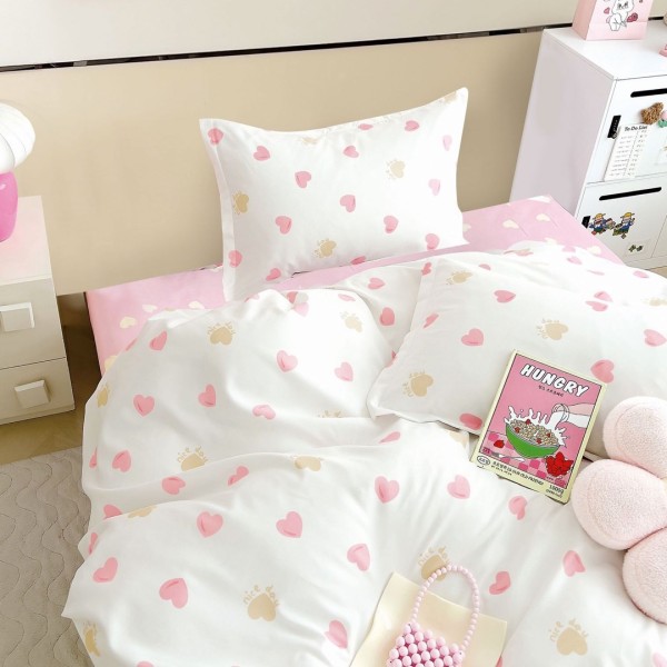 Lenjerie pat 1 PERSOANA, FINET, 4 piese, Alb-Roz, inimioare, Johny Home Pucioasa, cod produs: SPR-Y60-79