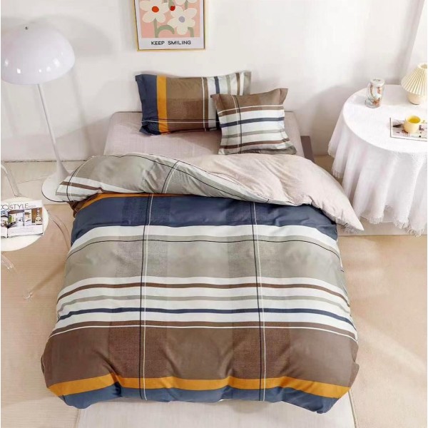 Lenjerie pat 1 PERSOANA, FINET, 4 piese, cu ELASTIC, Albastru-Maro, dungi, Johny Home Pucioasa, cod produs: SPR-T60-112