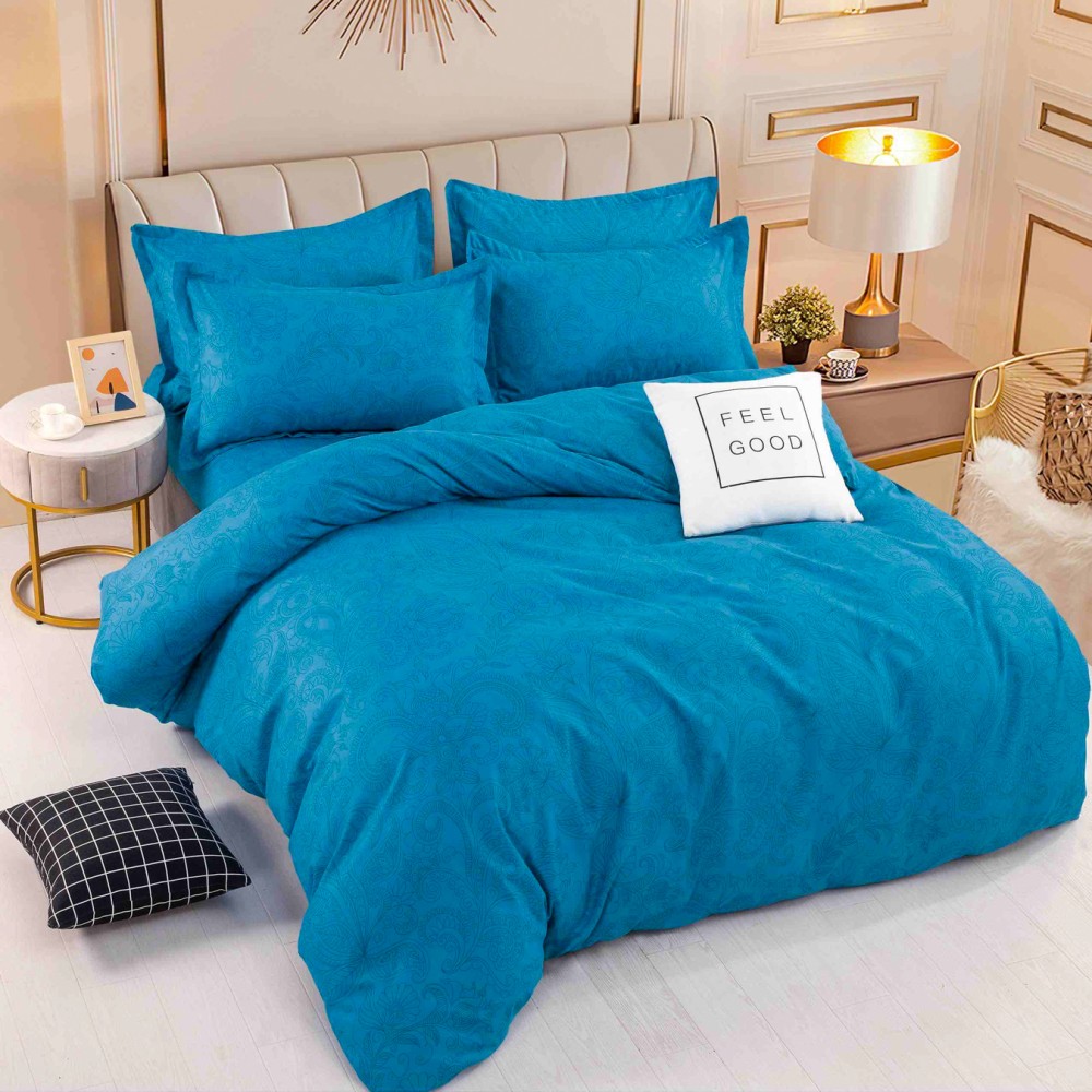 Lenjerie pat 1 PERSOANA, FINET, 4 piese, Jojo Home, Albastru, model floral, cod produs: JOS174