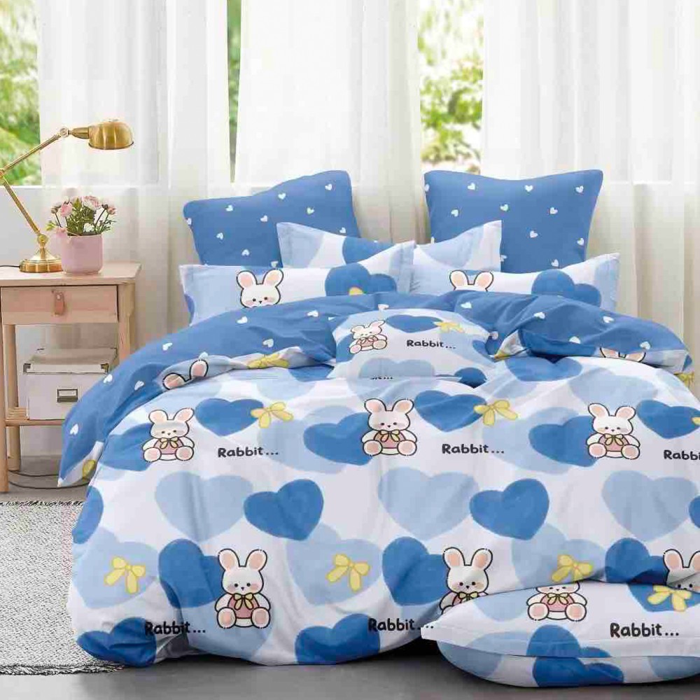 Lenjerie pat 1 PERSOANA, FINET, 4 piese, Jojo Home, Bleu-Alb, inimioare, cod produs: JOS192