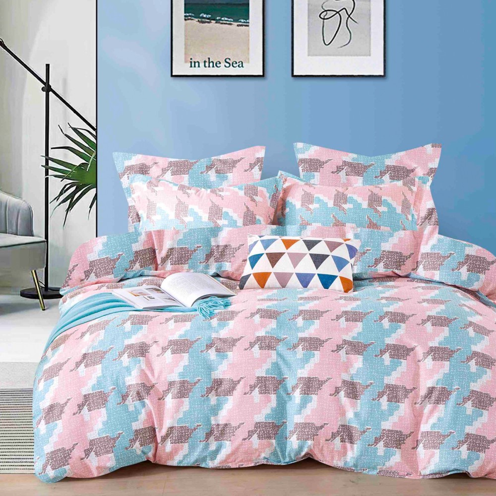Lenjerie pat 1 PERSOANA, FINET, 4 piese, Jojo Home, Bleu-Roz, model pepit, cod produs: JOS193