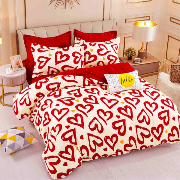 Lenjerie pat 1 PERSOANA, FINET, 4 piese, Jojo Home, Crem-Rosu, inimioare, cod produs: JOS180