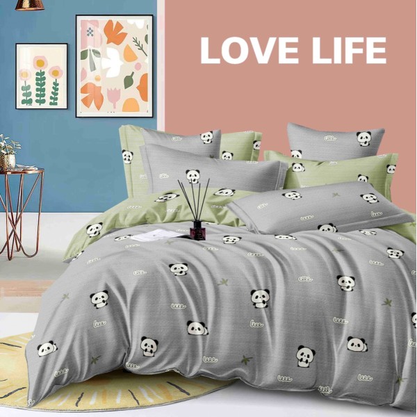 Lenjerie pat 1 PERSOANA, FINET, 4 piese, Jojo Home, Gri, ursuleti panda, cod produs: JOS214