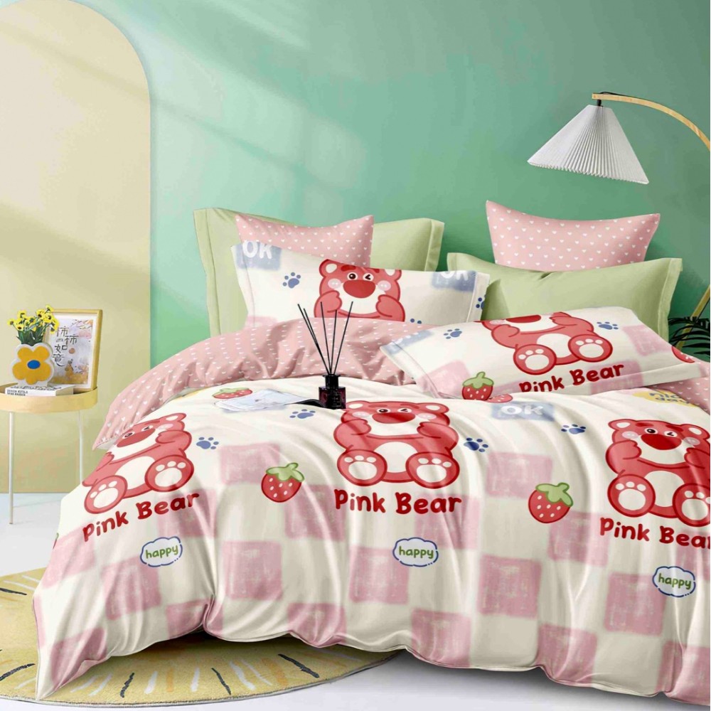 Lenjerie pat 1 PERSOANA, FINET, 4 piese, Jojo Home, Roz, capsuni, ursuleti, cod produs: JOS203