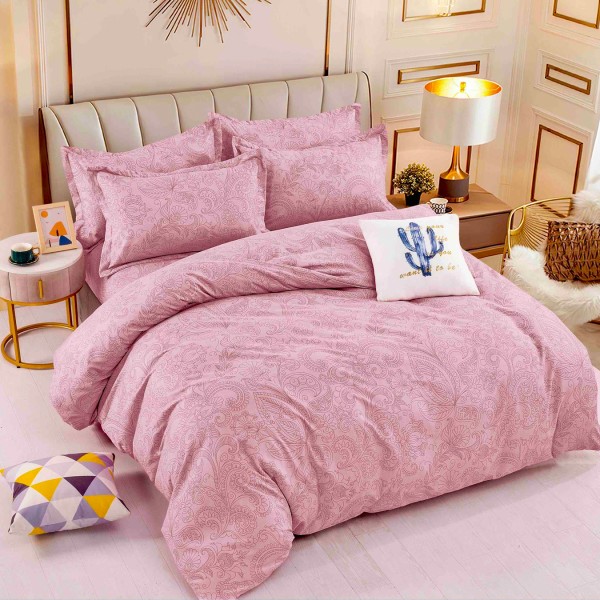 Lenjerie pat 1 PERSOANA, FINET, 4 piese, Jojo Home, Roz, model floral, cod produs: JOS177