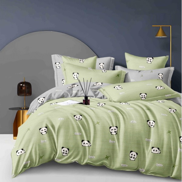 Lenjerie pat 1 PERSOANA, FINET, 4 piese, Jojo Home, Verde, ursuleti panda, cod produs: JOS211