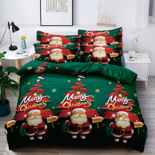 Lenjerie pat 1 PERSOANA, FINET, 4 piese, Jojo Home, Craciun, Verde, brazi, Mos Craciun, cod produs: JOS325
