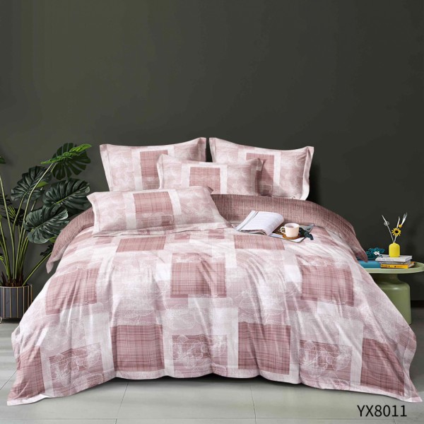 Lenjerie pat 140x200cm, FINET, cu elastic, 4 piese, Roz Ars, Pătrate, Flori, Primavara Casa, cod produs: PRM-FS-YX8011