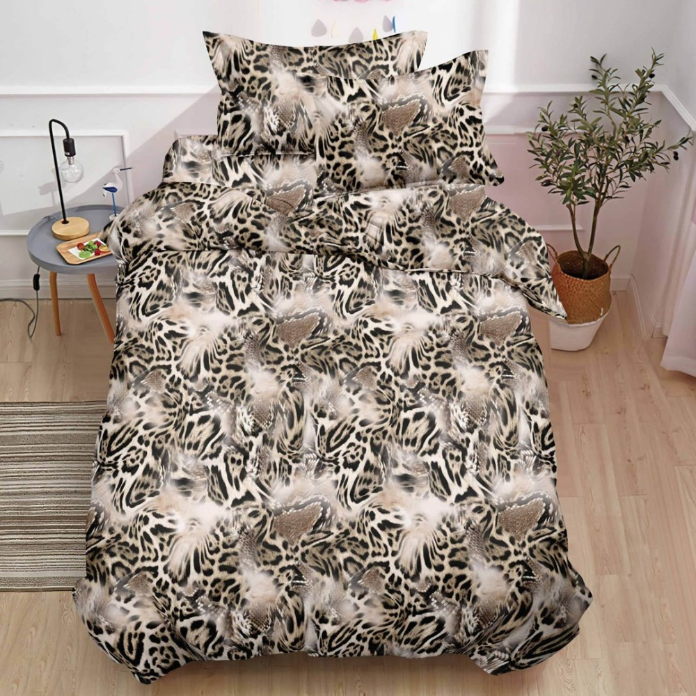 Lenjerie pat 1 PERSOANA, FINET, 4 piese, cu ELASTIC, Bej, abstract, animal print, Johny Home Pucioasa, cod produs: SPR-T60-147