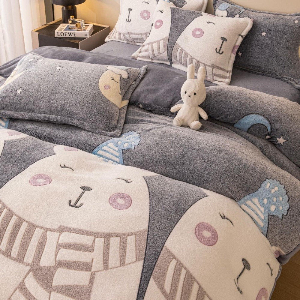 Lenjerie pat 1 PERSOANA, Super Pufoasa COCOLINO, 4 piese, Jojo Home, Gri, ursuleti, cod produs: JOK511