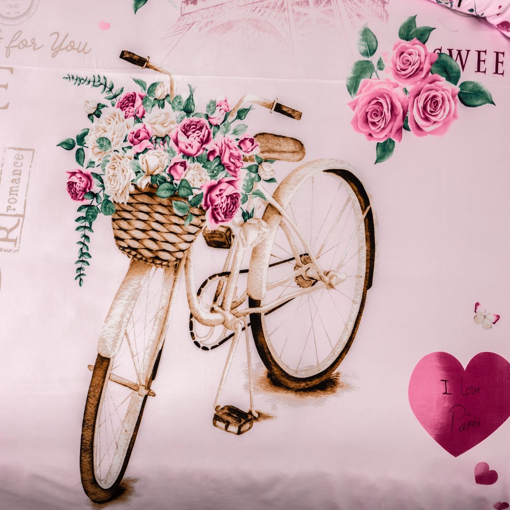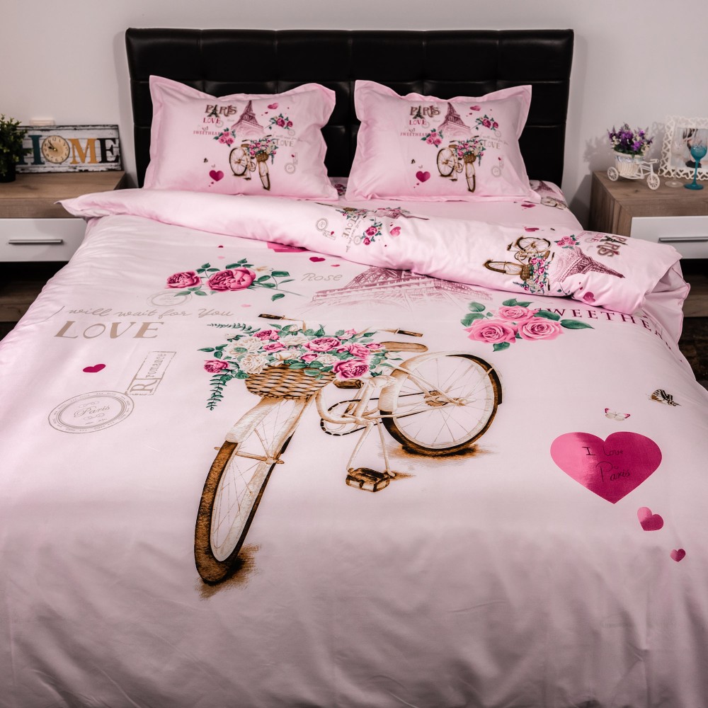 Lenjerie pat dublu, Ralex Pucioasa, Bumbac Satinat, 4 piese, 3D Digital Print, Roz, paris, cod produs: RXE92