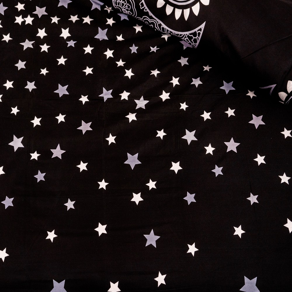 Lenjerie pat dublu, Ralex Pucioasa, Bumbac Satinat, 4 piese, 3D Digital Print, Negru-Alb, stelute, cod produs: RXE102