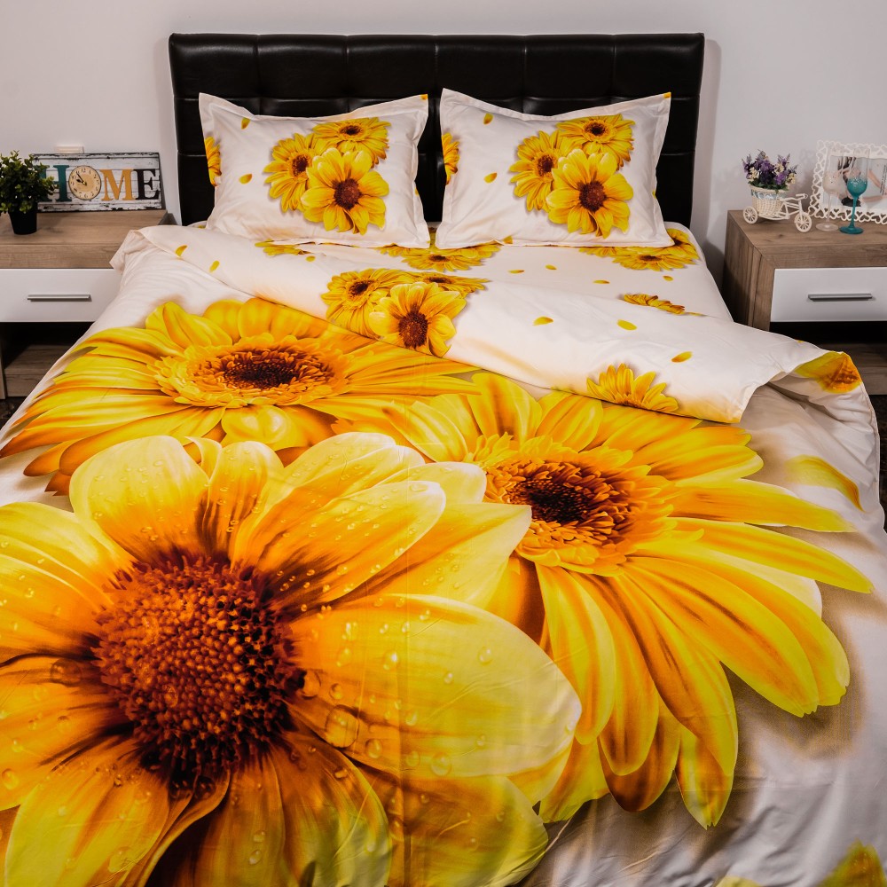 Lenjerie pat dublu, Ralex Pucioasa, Bumbac Satinat, 4 piese, 3D Digital Print, Galben, floarea soarelui, cod produs: RXE106