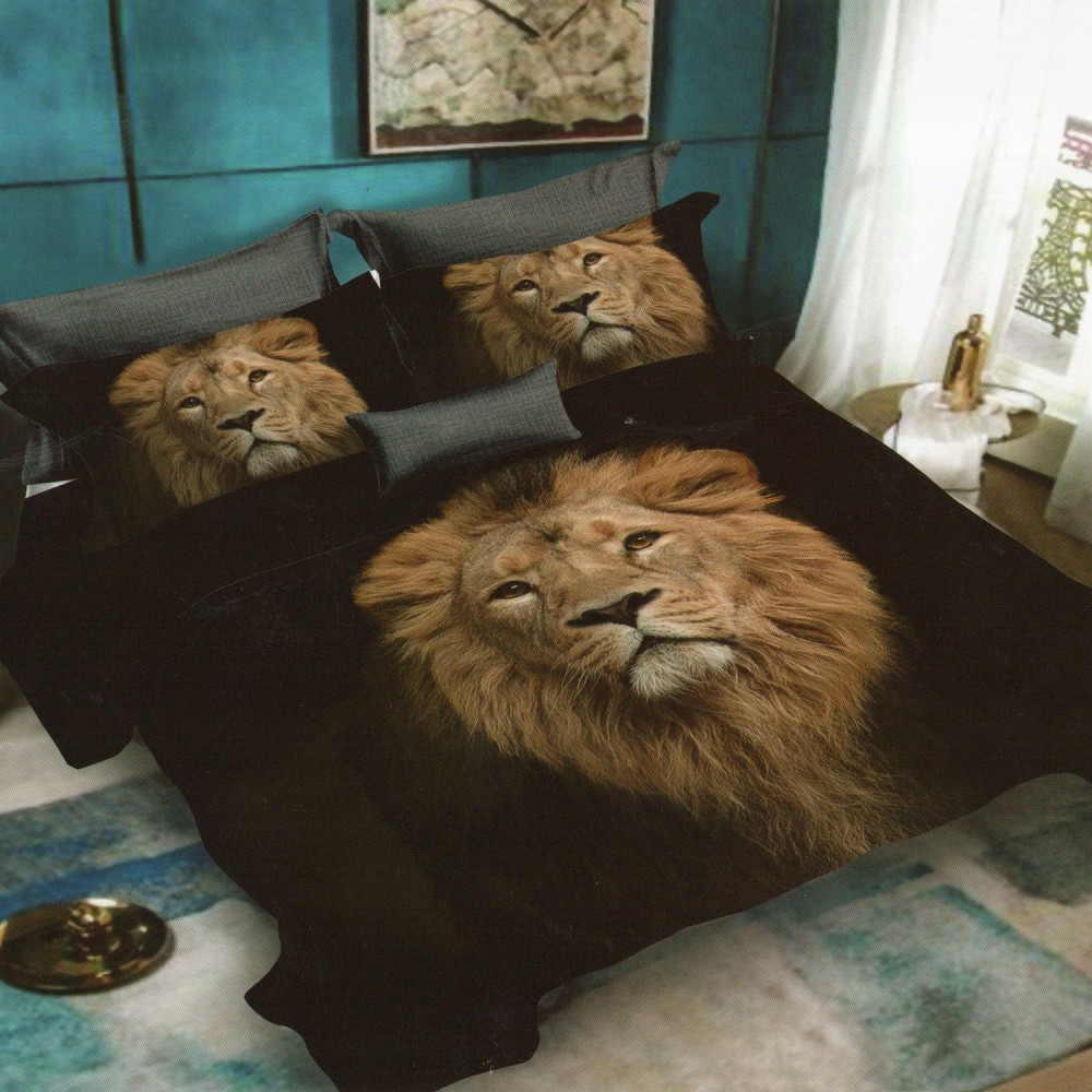 Lenjerie pat dublu, Ralex Pucioasa, 6 piese, Bumbac Finet, imprimeu 3D, IDENTIC CU POZA, Negru, leu, cod produs: RXF310