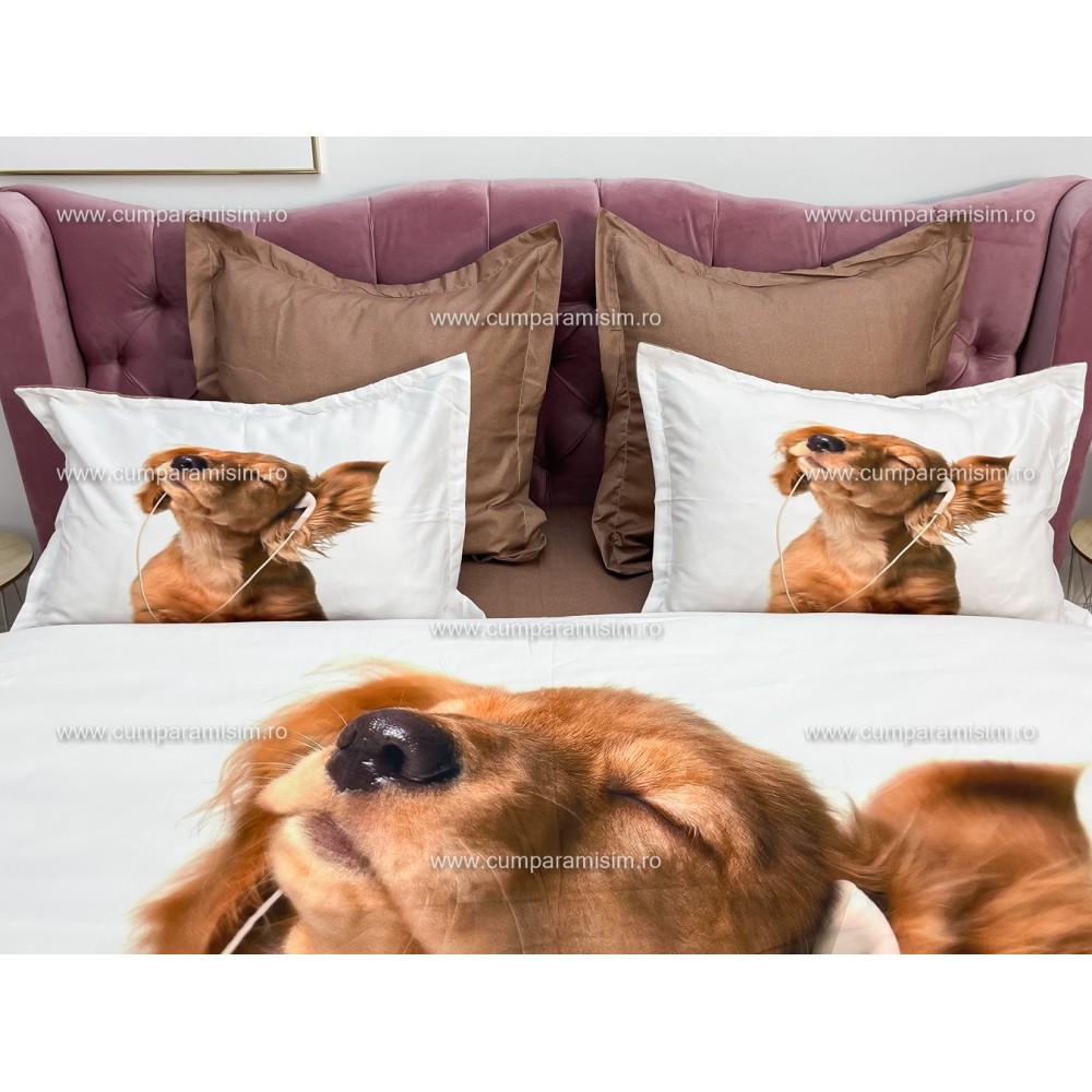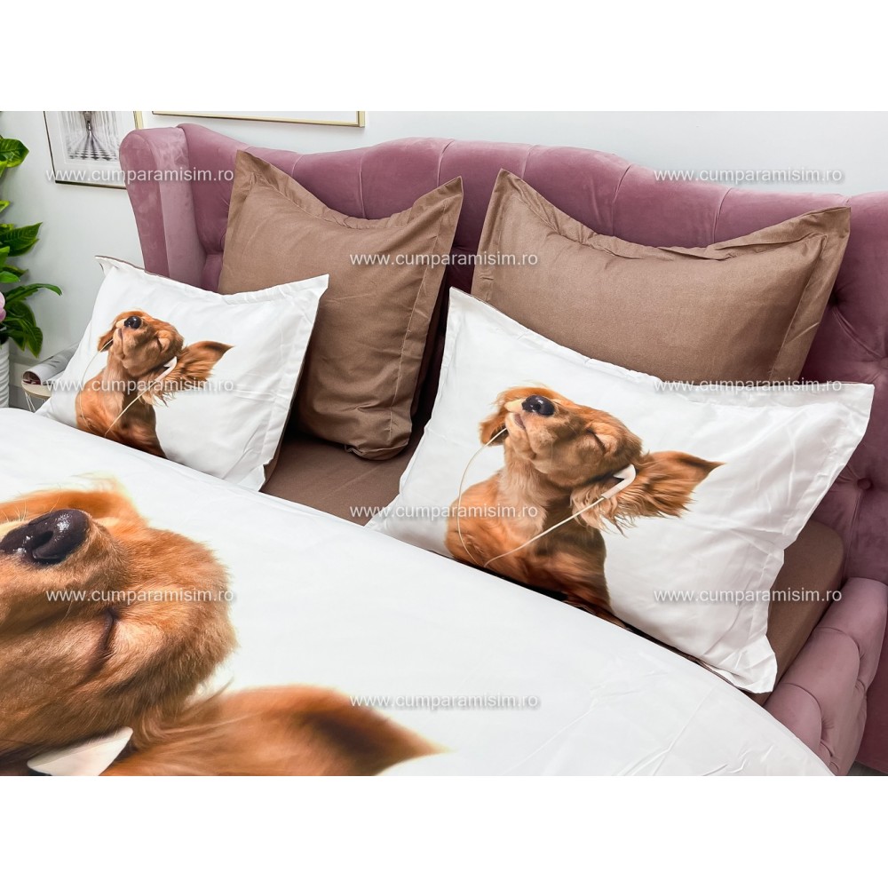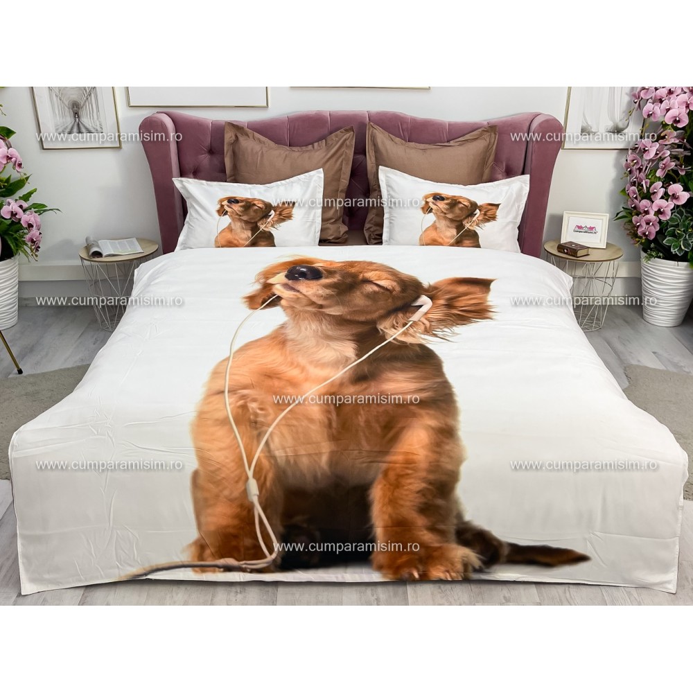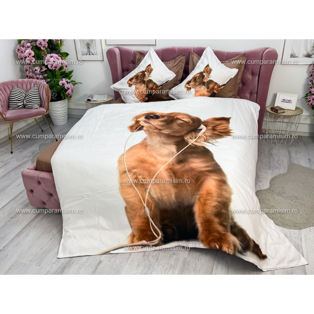 Lenjerie pat dublu, Ralex Pucioasa, 6 piese, Bumbac Finet, imprimeu 3D, IDENTIC CU POZA, Alb, catel, cod produs: RXF316