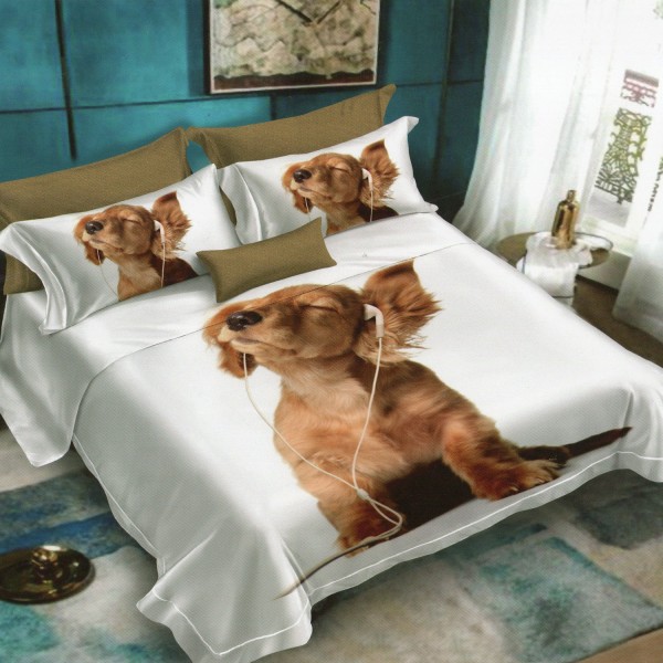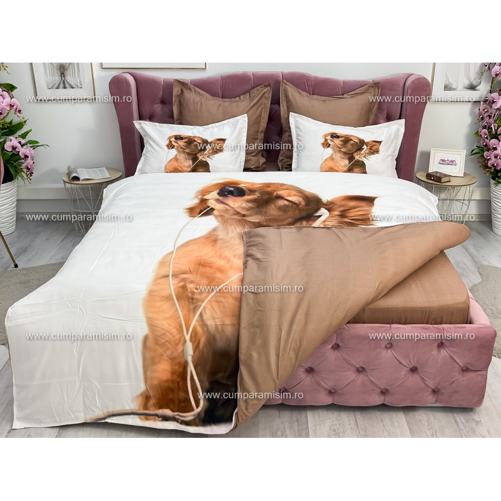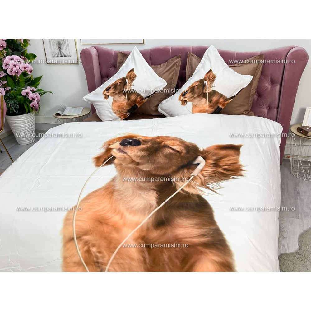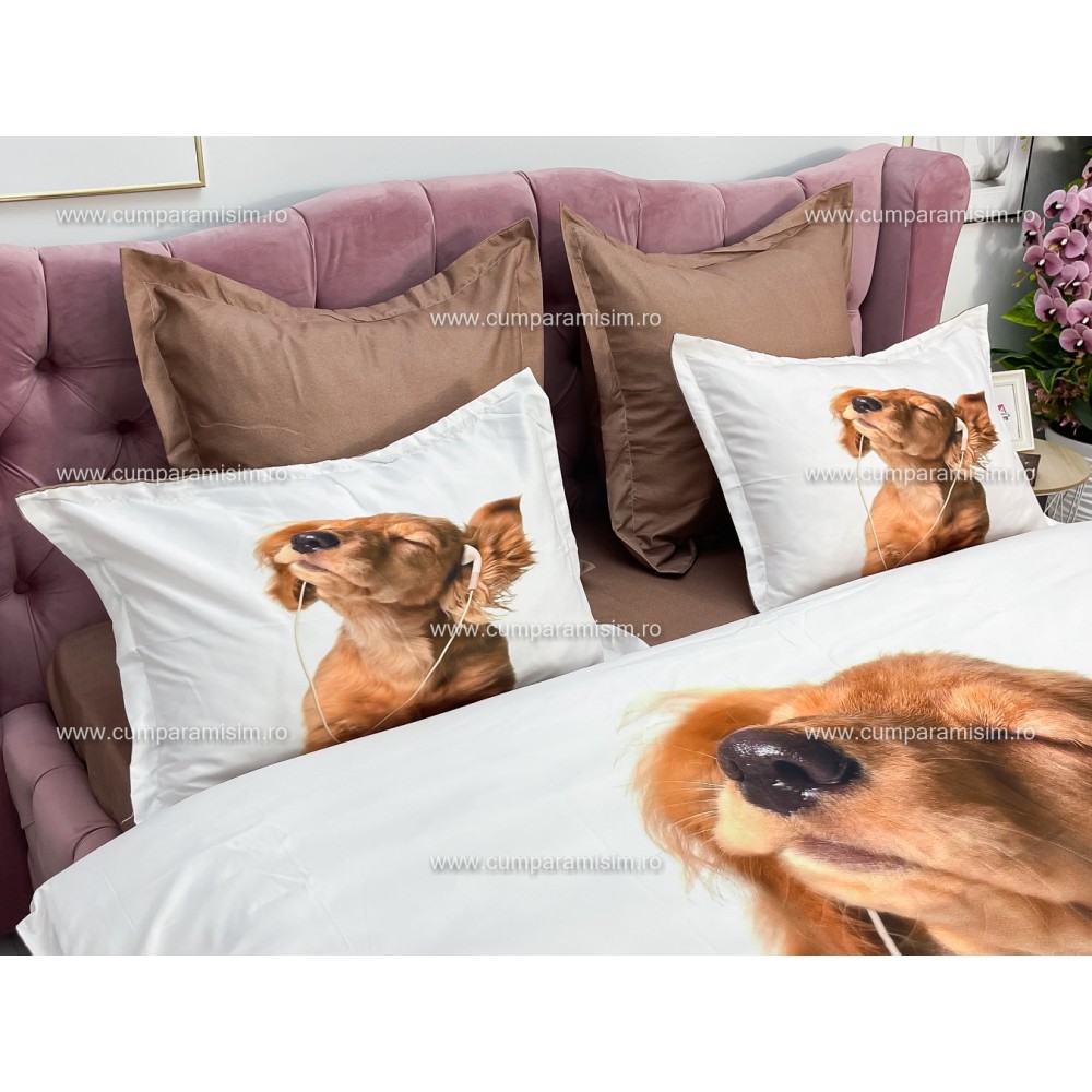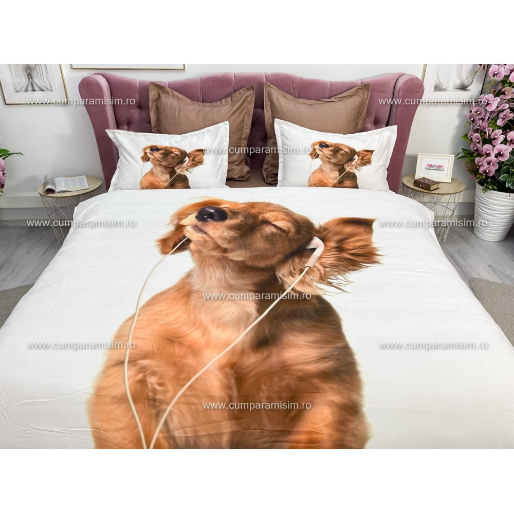 Lenjerie pat dublu, Ralex Pucioasa, 6 piese, Bumbac Finet, imprimeu 3D, IDENTIC CU POZA, Alb, catel, cod produs: RXF316