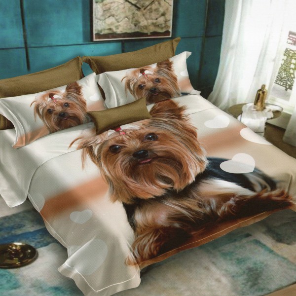 Lenjerie pat dublu, Ralex Pucioasa, 6 piese, Bumbac Finet, imprimeu 3D, IDENTIC CU POZA, Bej, catel, cod produs: RXF350