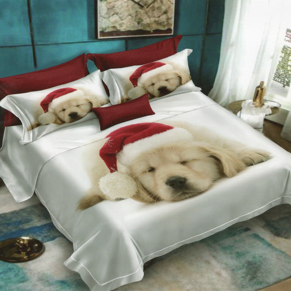 Lenjerie pat dublu, Ralex Pucioasa, 6 piese, Bumbac Finet, imprimeu 3D, IDENTIC CU POZA, Alb, catel, cod produs: RXF352