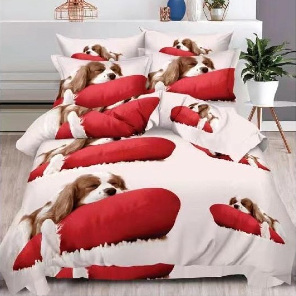 Lenjerie pat dublu, 6 PIESE, IMPRIMEU 3D Multiplicat, Microfibra, Rosu, catei, Johny Home Pucioasa, cod produs: SPR-B60-06