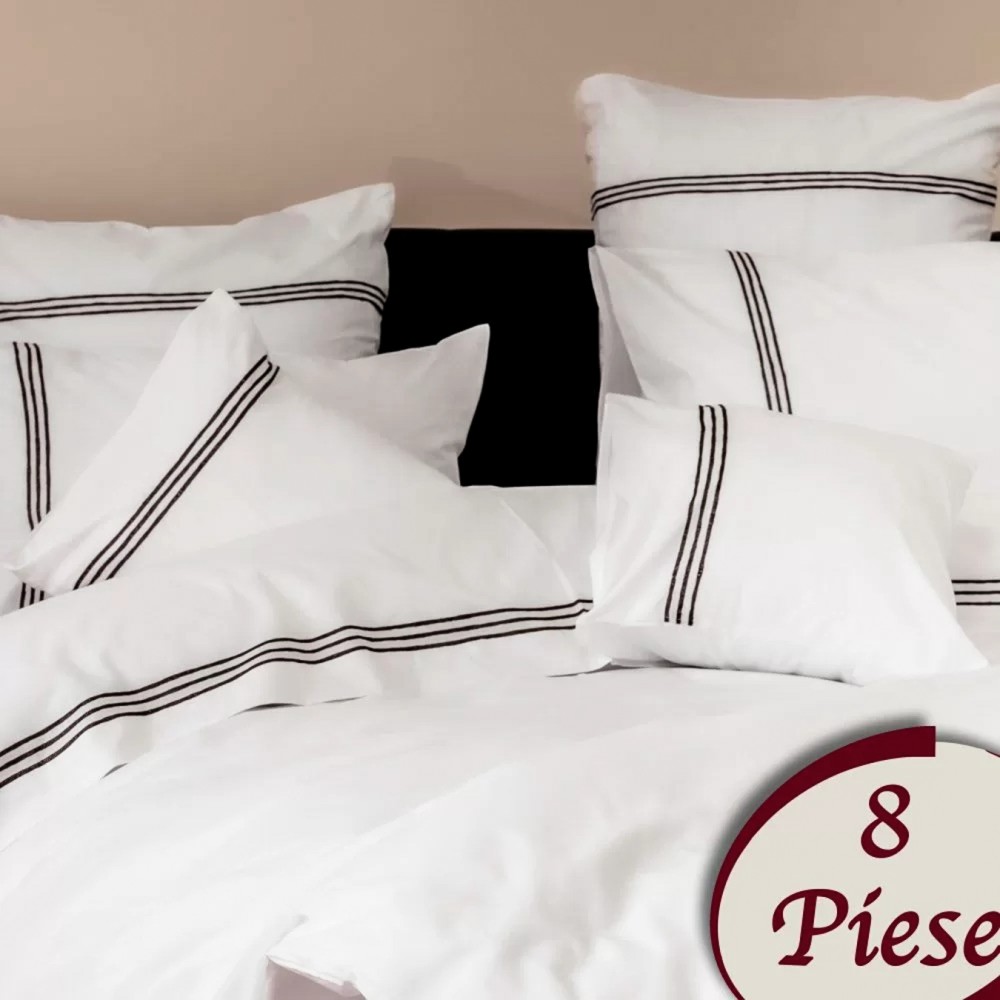 Lenjerie pat dublu, 8 piese, Bumbac 100% Percal, Alb-Negru, Ralex Pucioasa, cod produs: RXP103