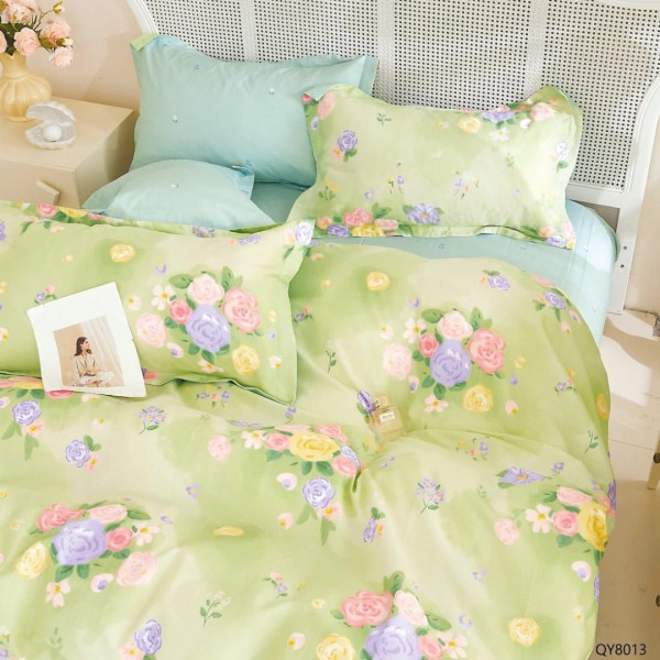 Lenjerie pat dublu, BUMBAC 100% Percal, cu Elastic, 4 piese, Vernil, Bleu, Buchete de Flori, Primavara Casa, cod produs: PRM-BD-QY8013