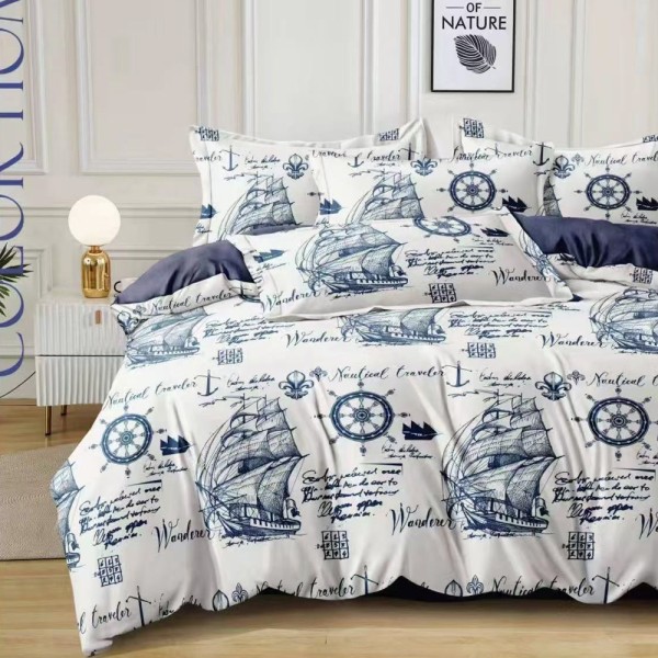 Lenjerie Pat Dublu, FINET, 6 piese, Alb, Albastru, vapoare, East Romania, cod produs: EST-FN-369