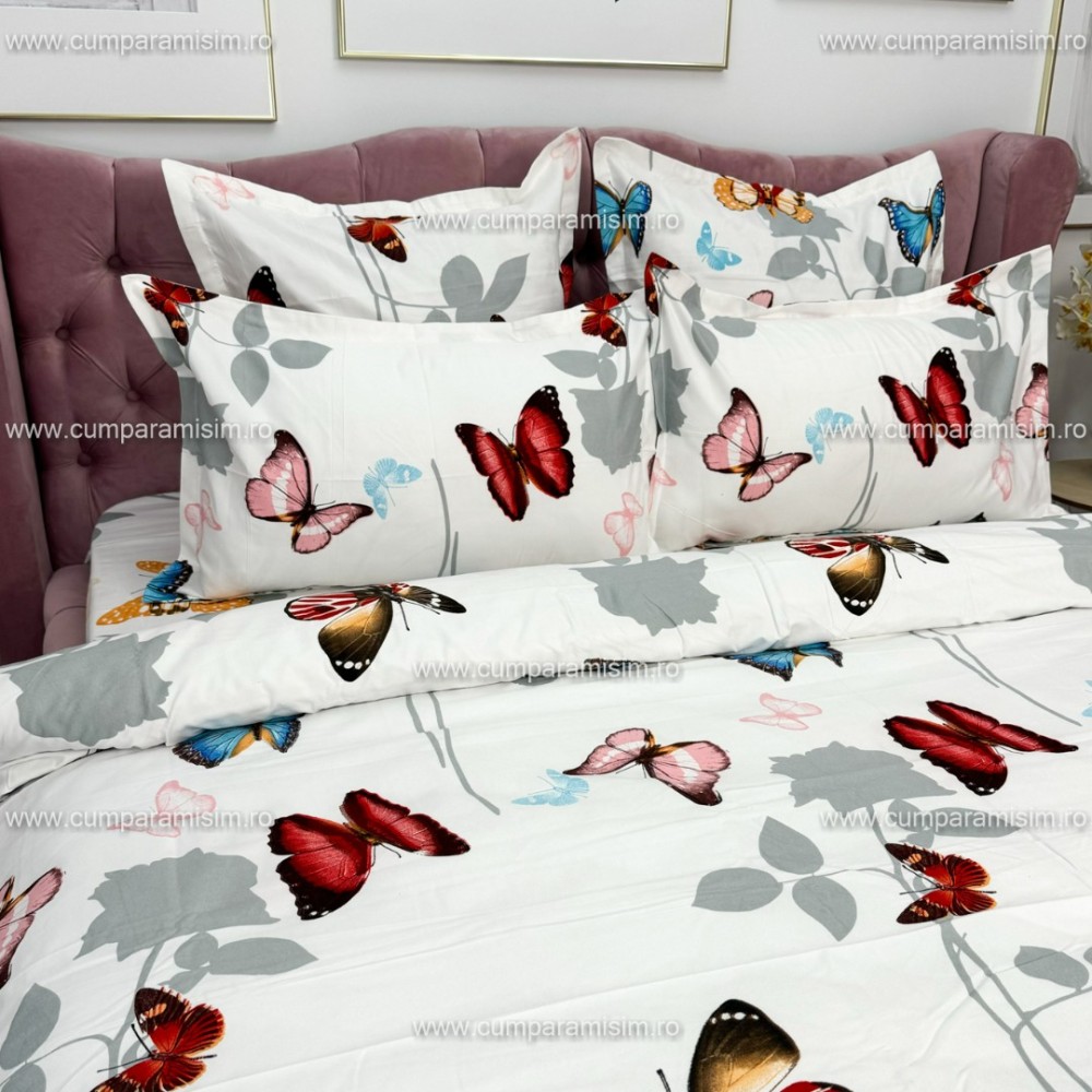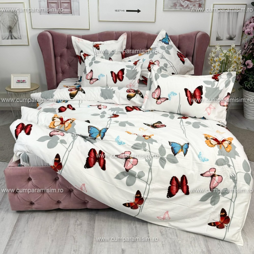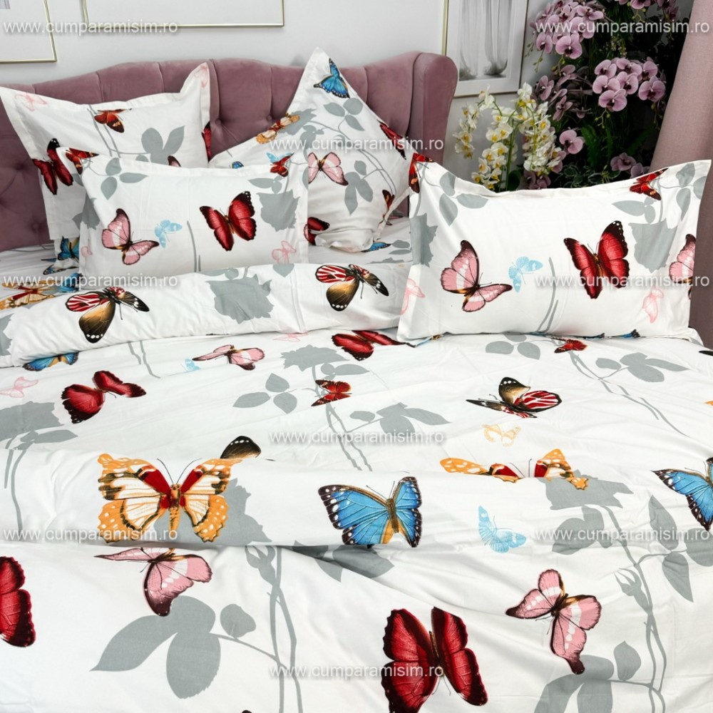 Lenjerie pat dublu, FINET, 6 piese, Alb, fluturi, Alti producatori, cod produs: YNF16