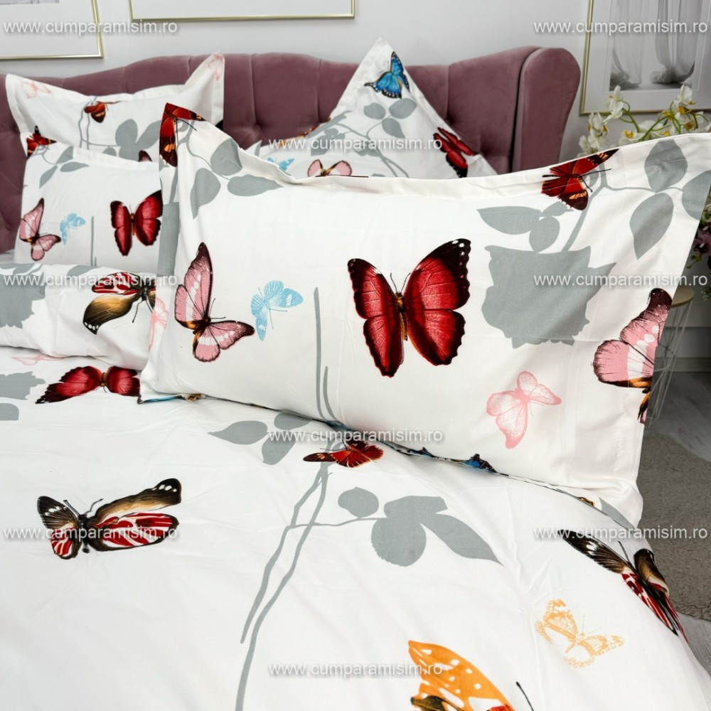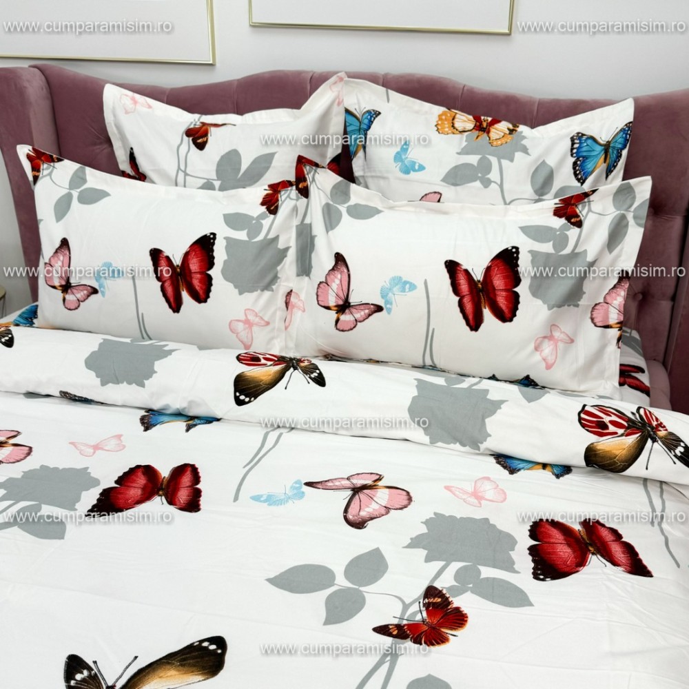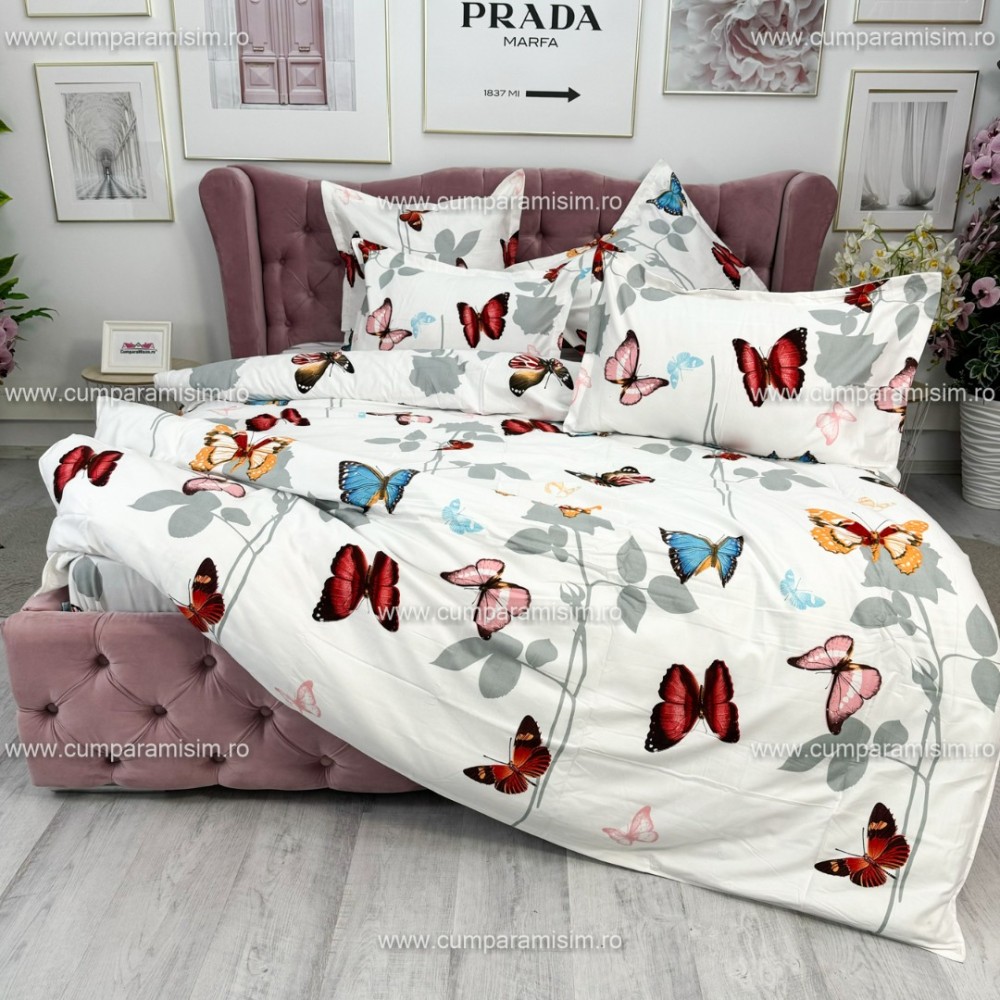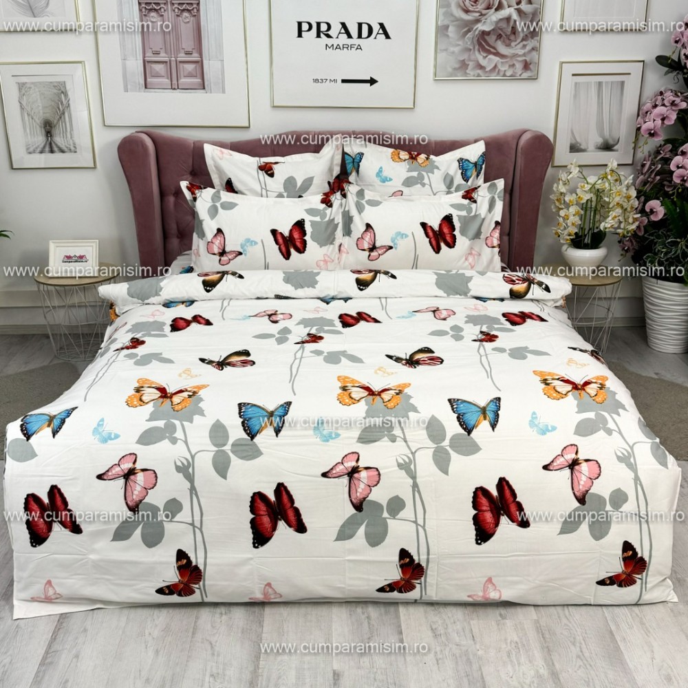 Lenjerie pat dublu, FINET, 6 piese, Alb, fluturi, Alti producatori, cod produs: YNF16