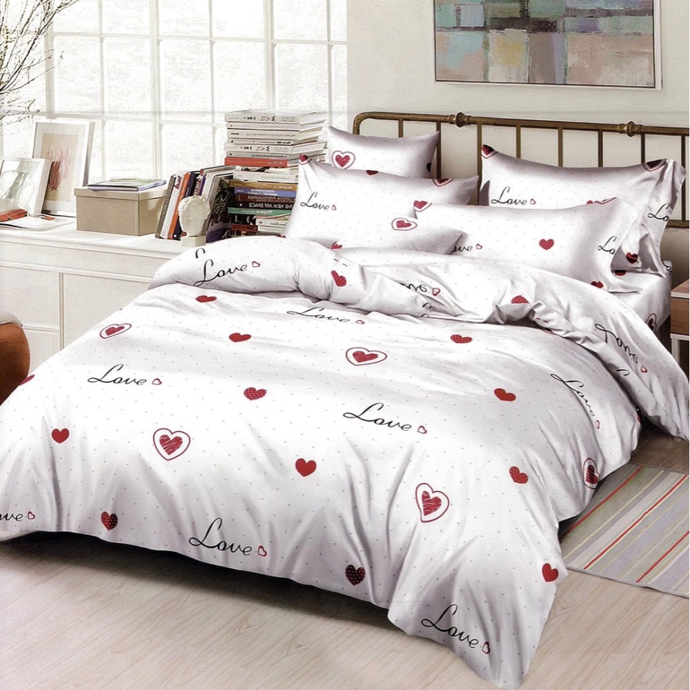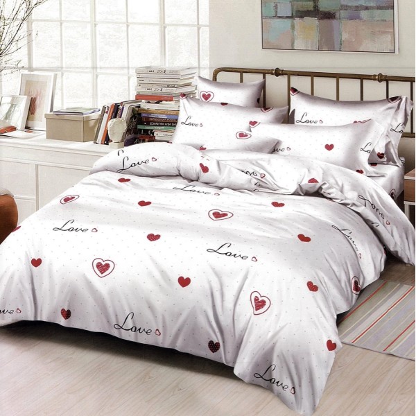 Lenjerie pat dublu, FINET, 6 piese, Alb, inimioare, Johny Home Pucioasa, cod produs: DKF134