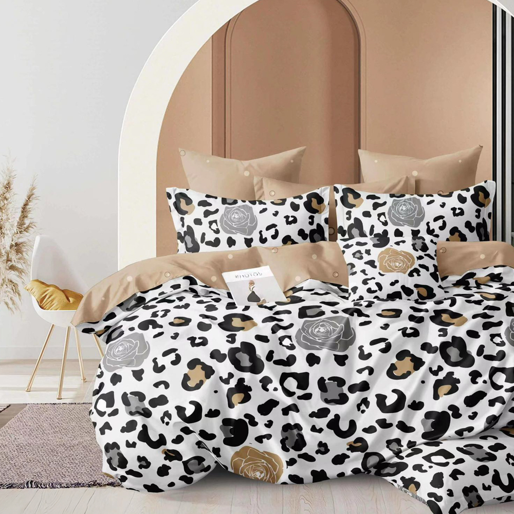 Lenjerie Pat Dublu, FINET, 6 piese, Alb, Negru, animal print, East Romania, cod produs: EST-FN-313