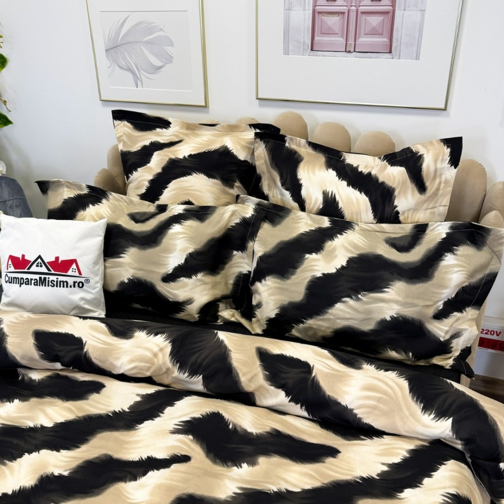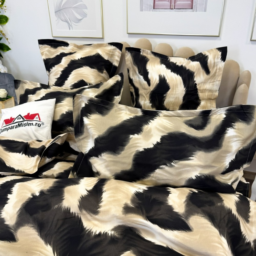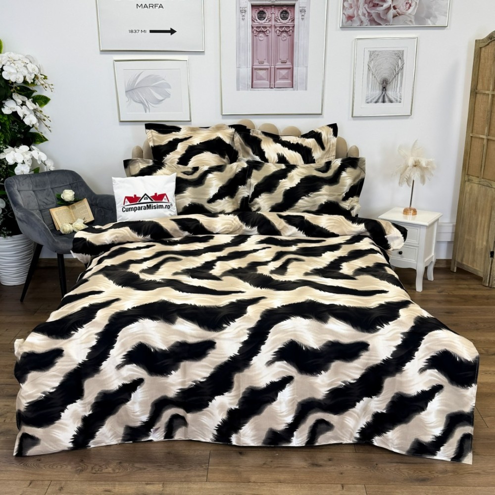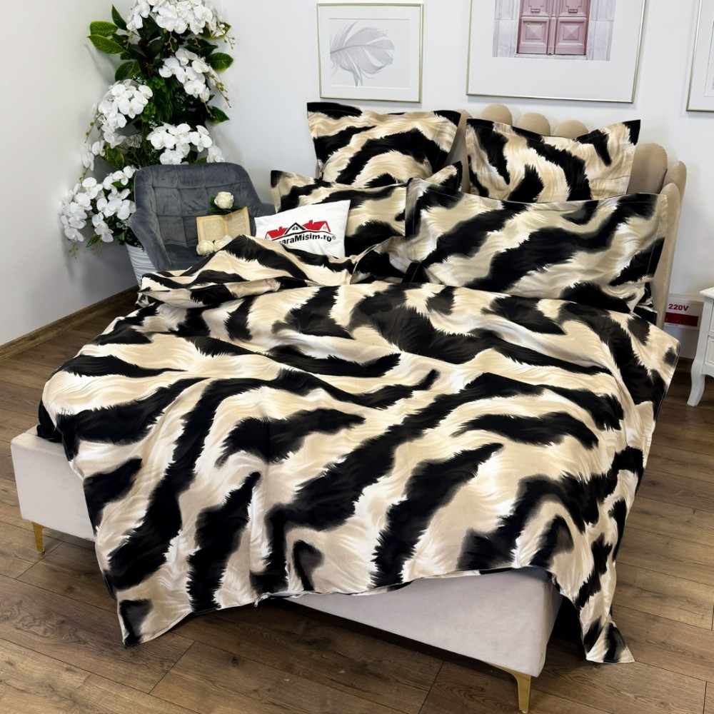 Lenjerie Pat Dublu, FINET, 6 piese, Alb, Negru, animal print luxury, East Romania, cod produs: EST-FN-398