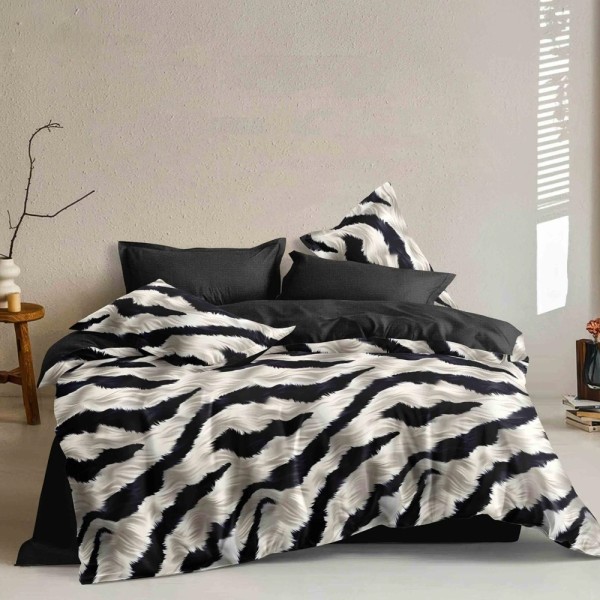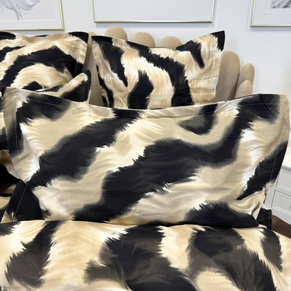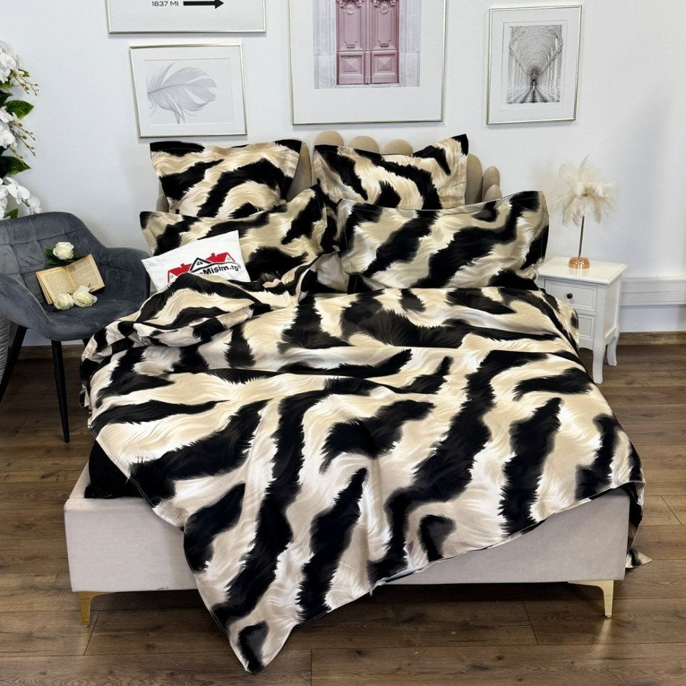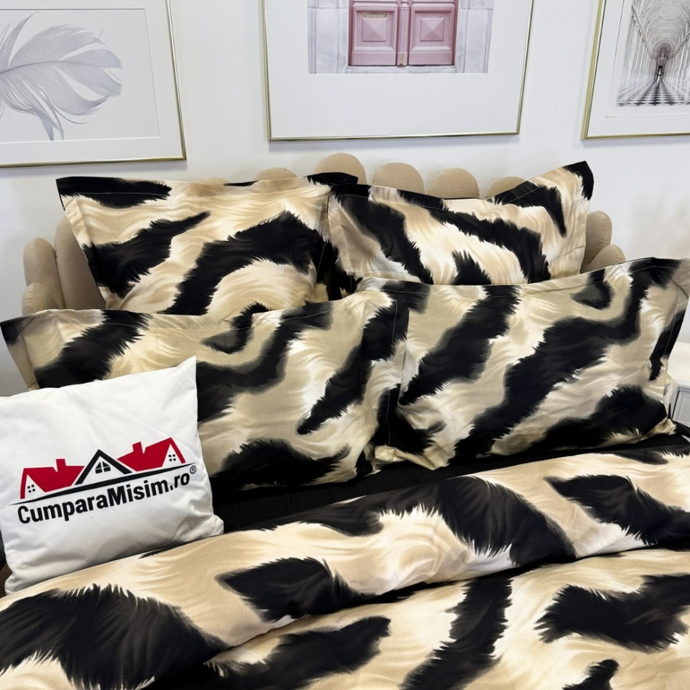 Lenjerie Pat Dublu, FINET, 6 piese, Alb, Negru, animal print luxury, East Romania, cod produs: EST-FN-398