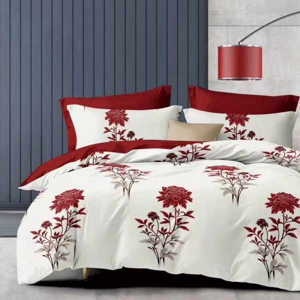 Lenjerie Pat Dublu, FINET, 6 piese, Alb, Rosu, flori, East Romania, cod produs: EST-FN-368