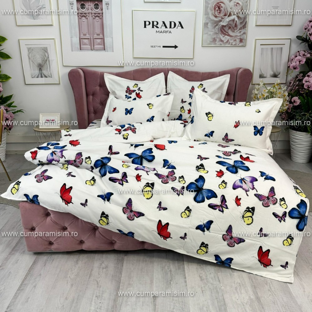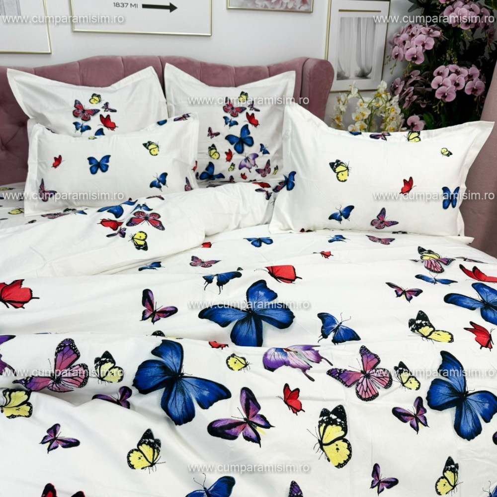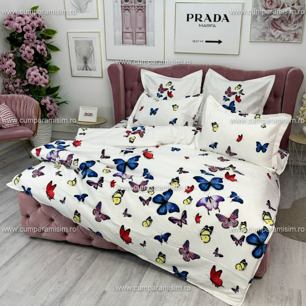 Lenjerie pat dublu, FINET, 6 piese, Albastru, fluturasi, Alti producatori, cod produs: YNF18