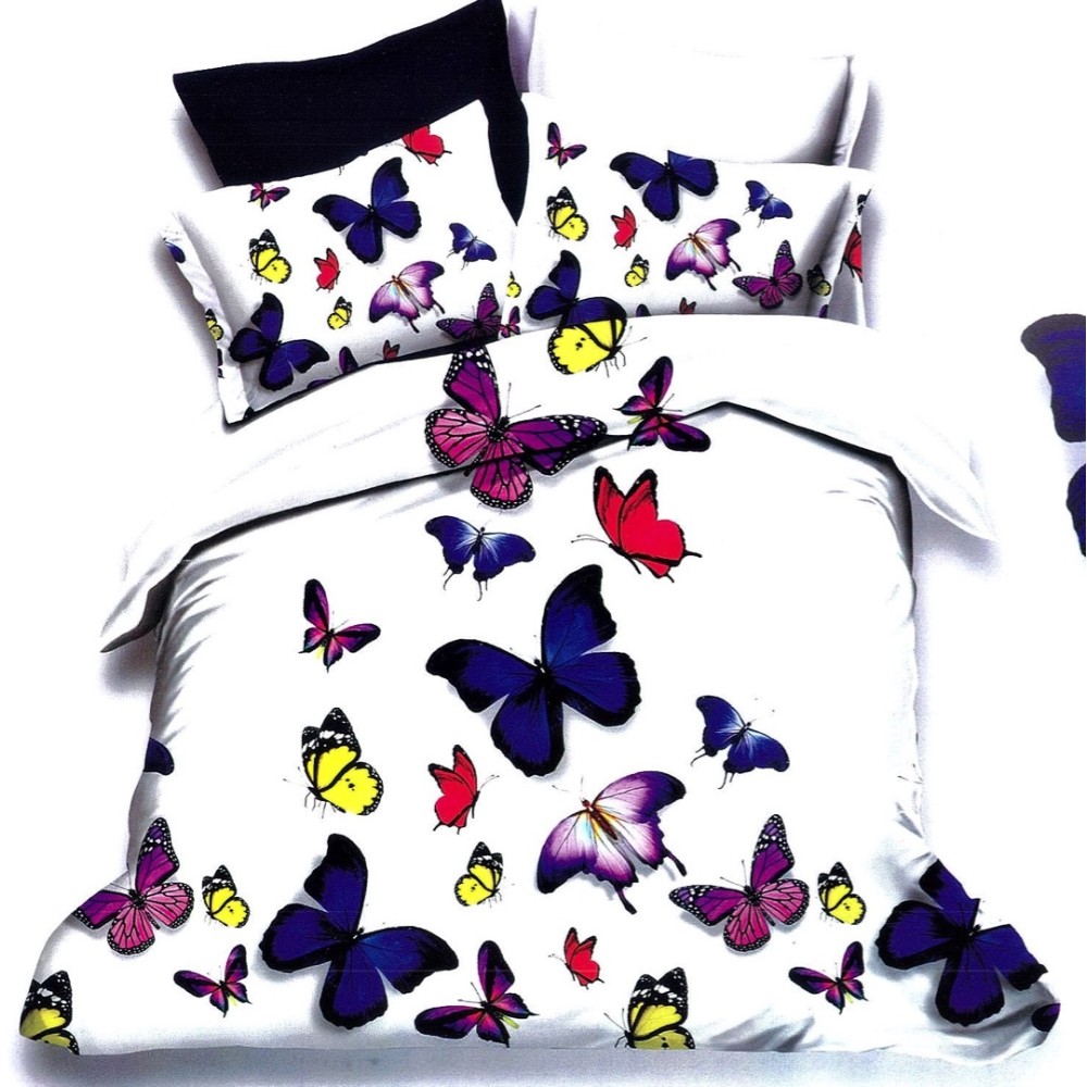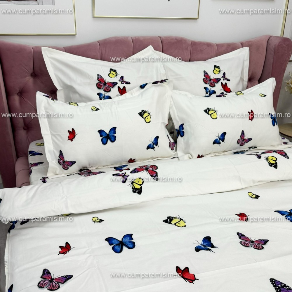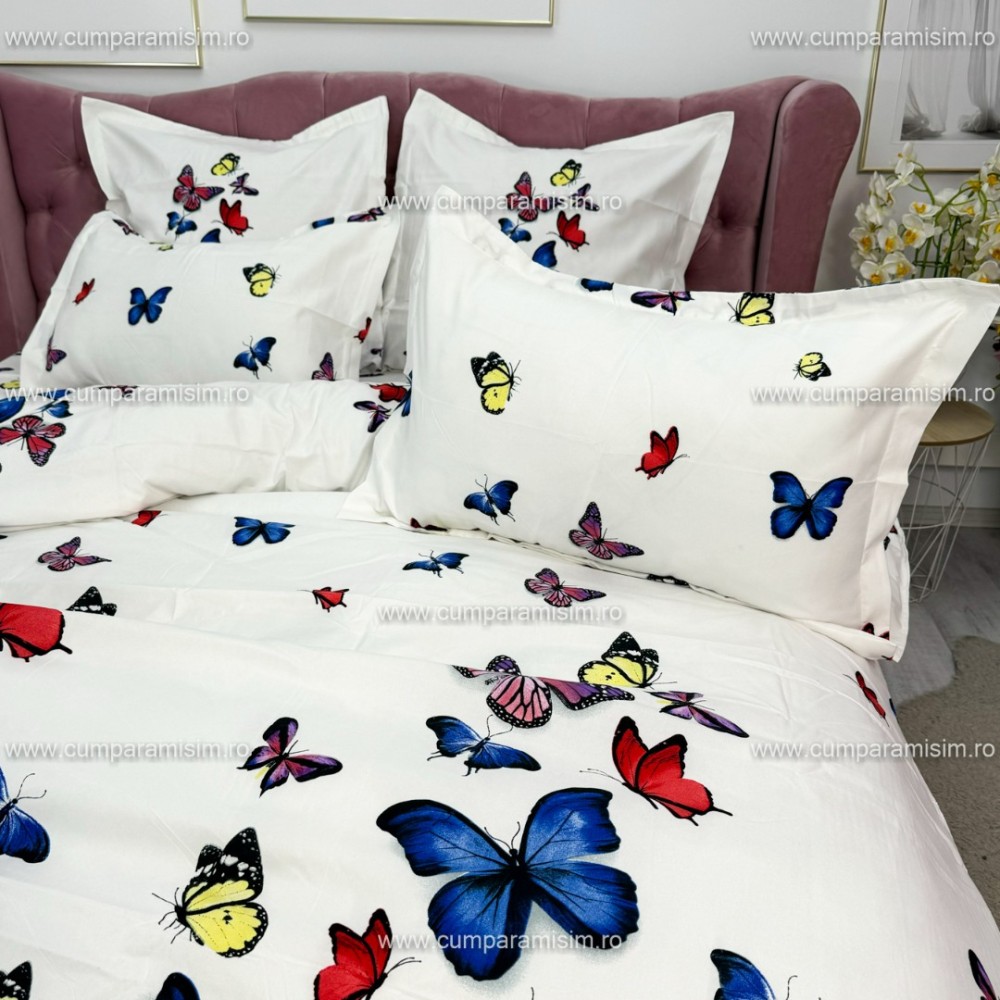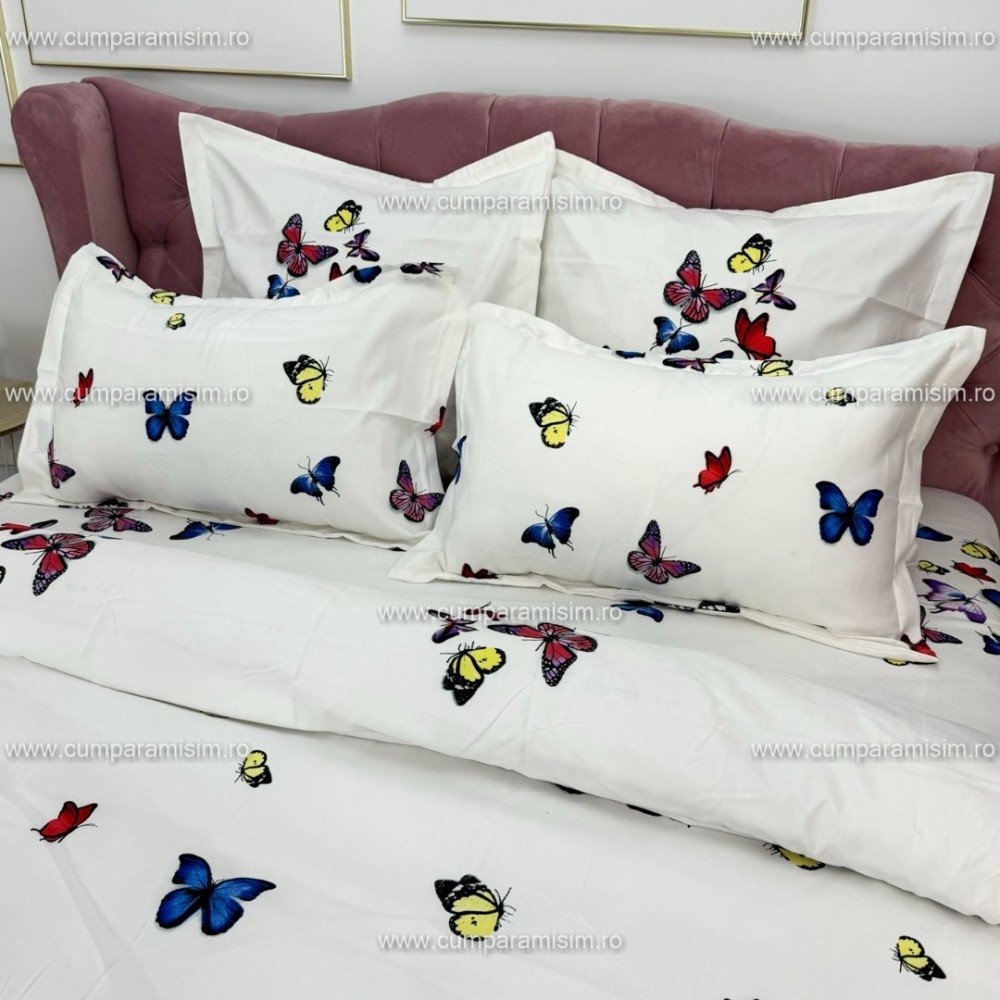 Lenjerie pat dublu, FINET, 6 piese, Albastru, fluturasi, Alti producatori, cod produs: YNF18