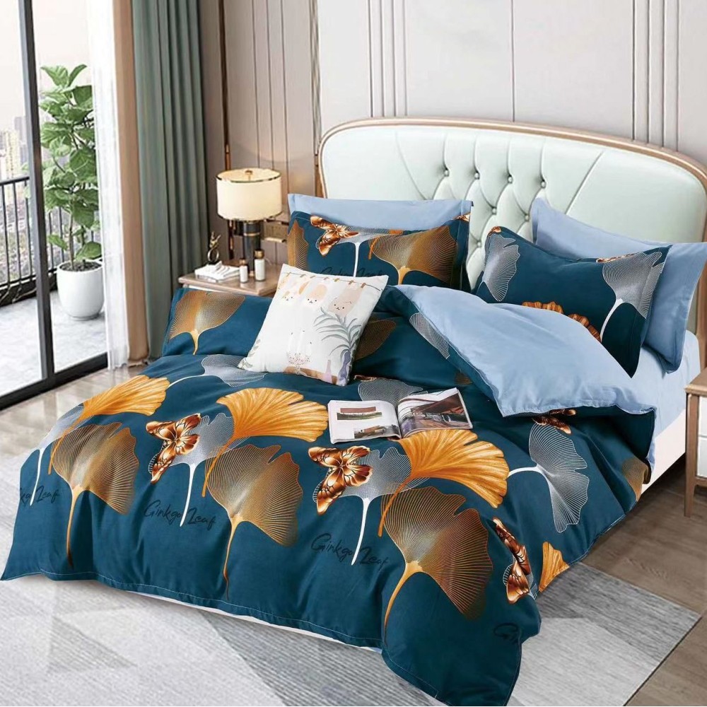 Lenjerie pat dublu, FINET, 6 piese, Albastru, frunze, CumparaMisim, cod produs: SKF23