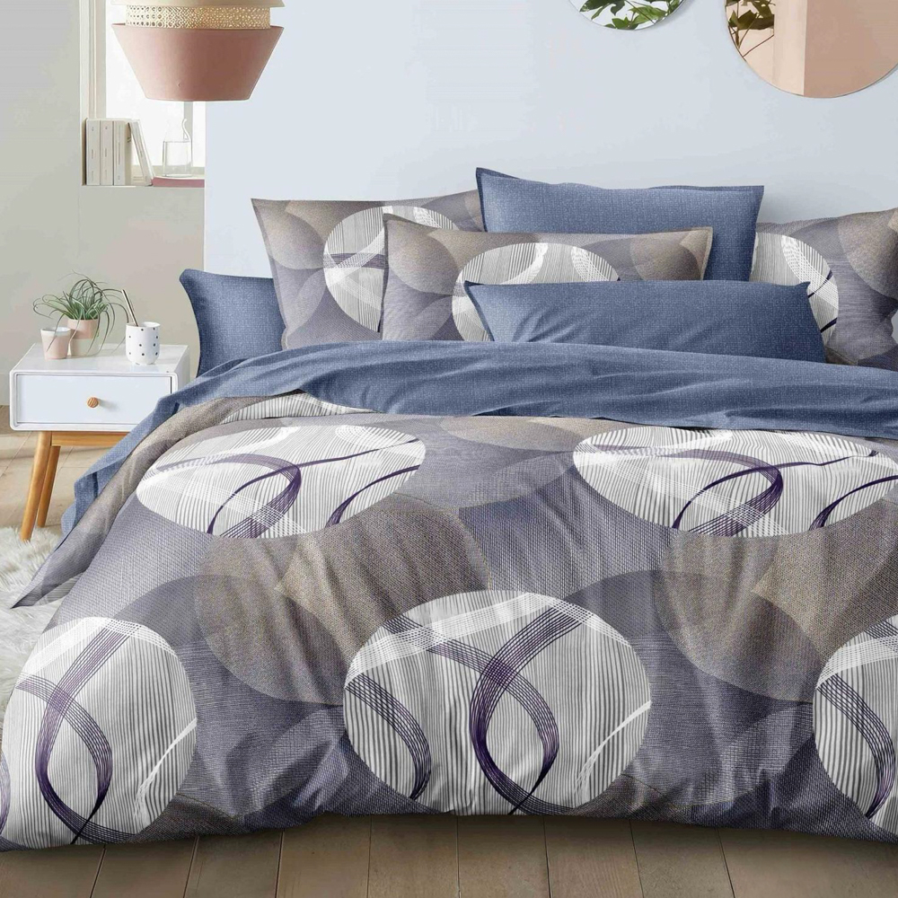 Lenjerie Pat Dublu, FINET, 6 piese, Albastru, Gri, abstract, East Romania, cod produs: EST-FN-341