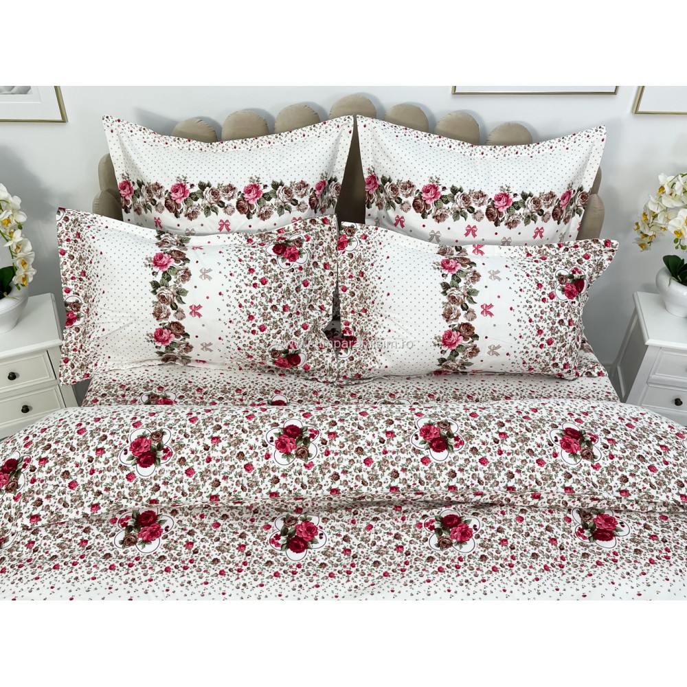 Lenjerie pat dublu, FINET, 6 piese, Alb-Multicolor, flori, Alti producatori, cod produs: YNF8
