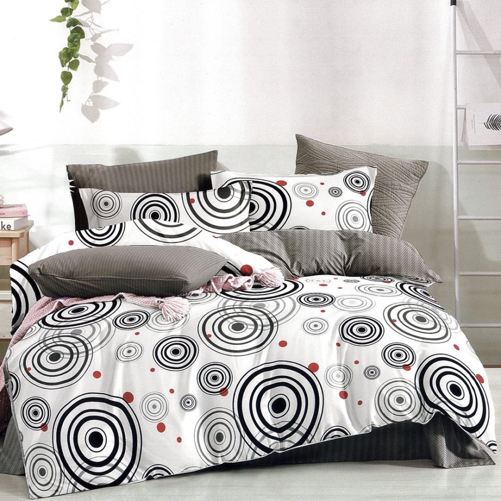 Lenjerie pat dublu, FINET, 6 piese, Alb-Negru, cercuri, buline, Johny Home Pucioasa, cod produs: DKF115