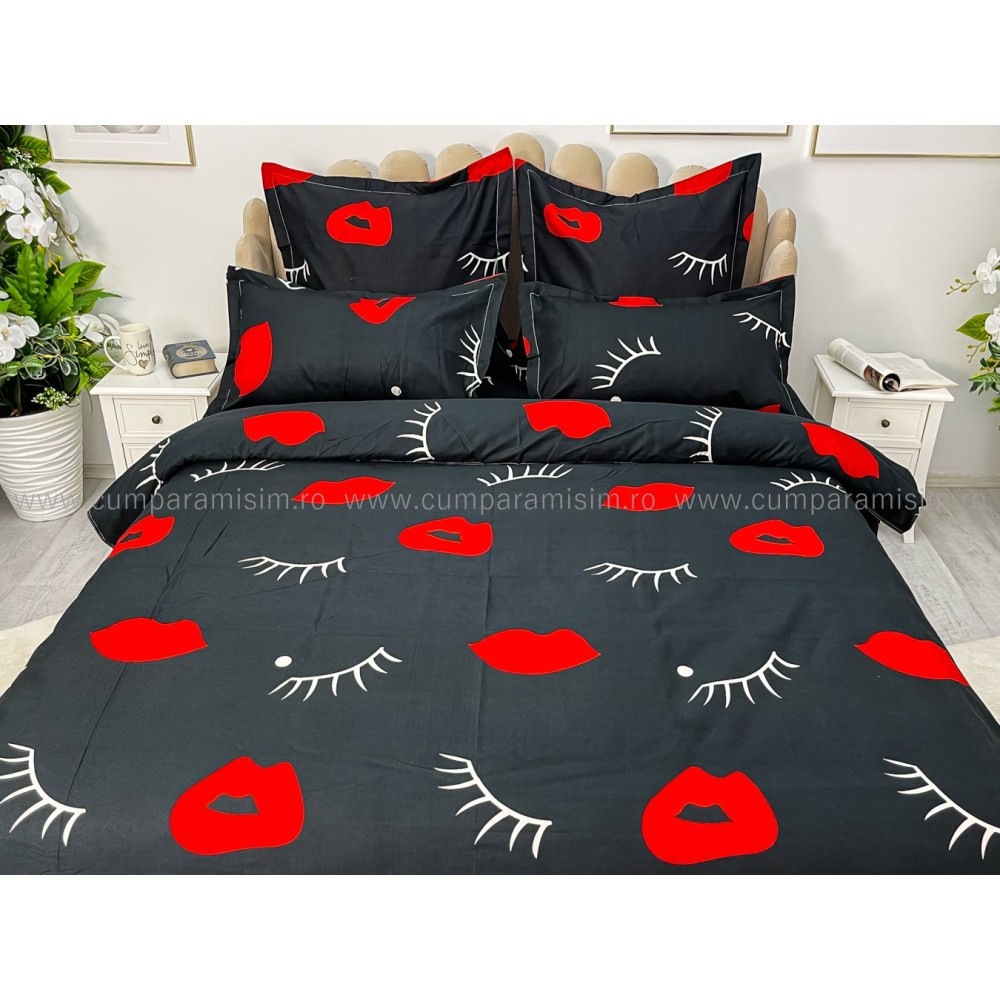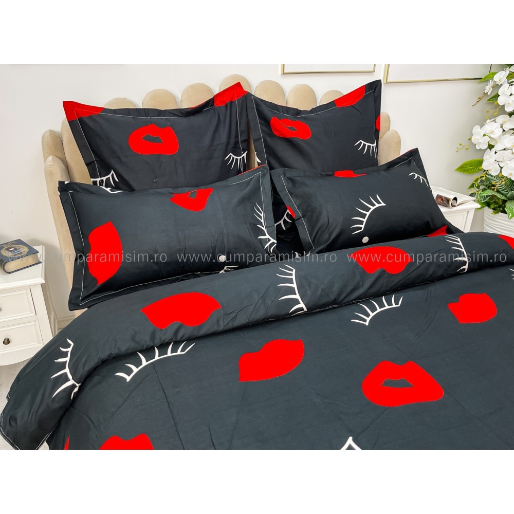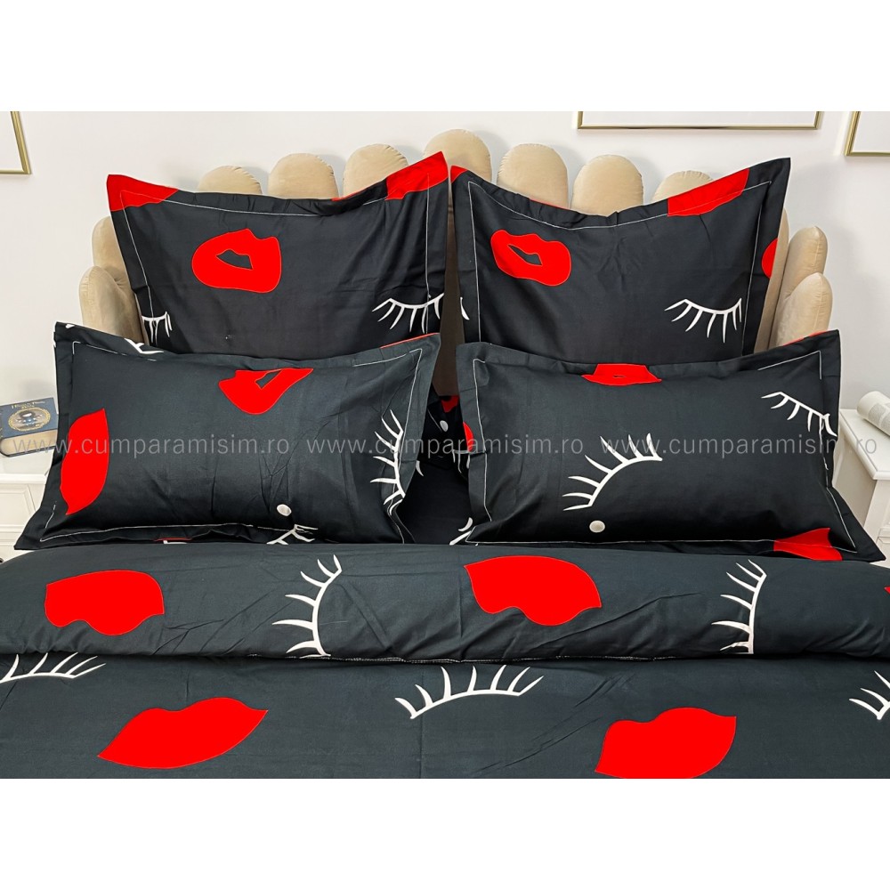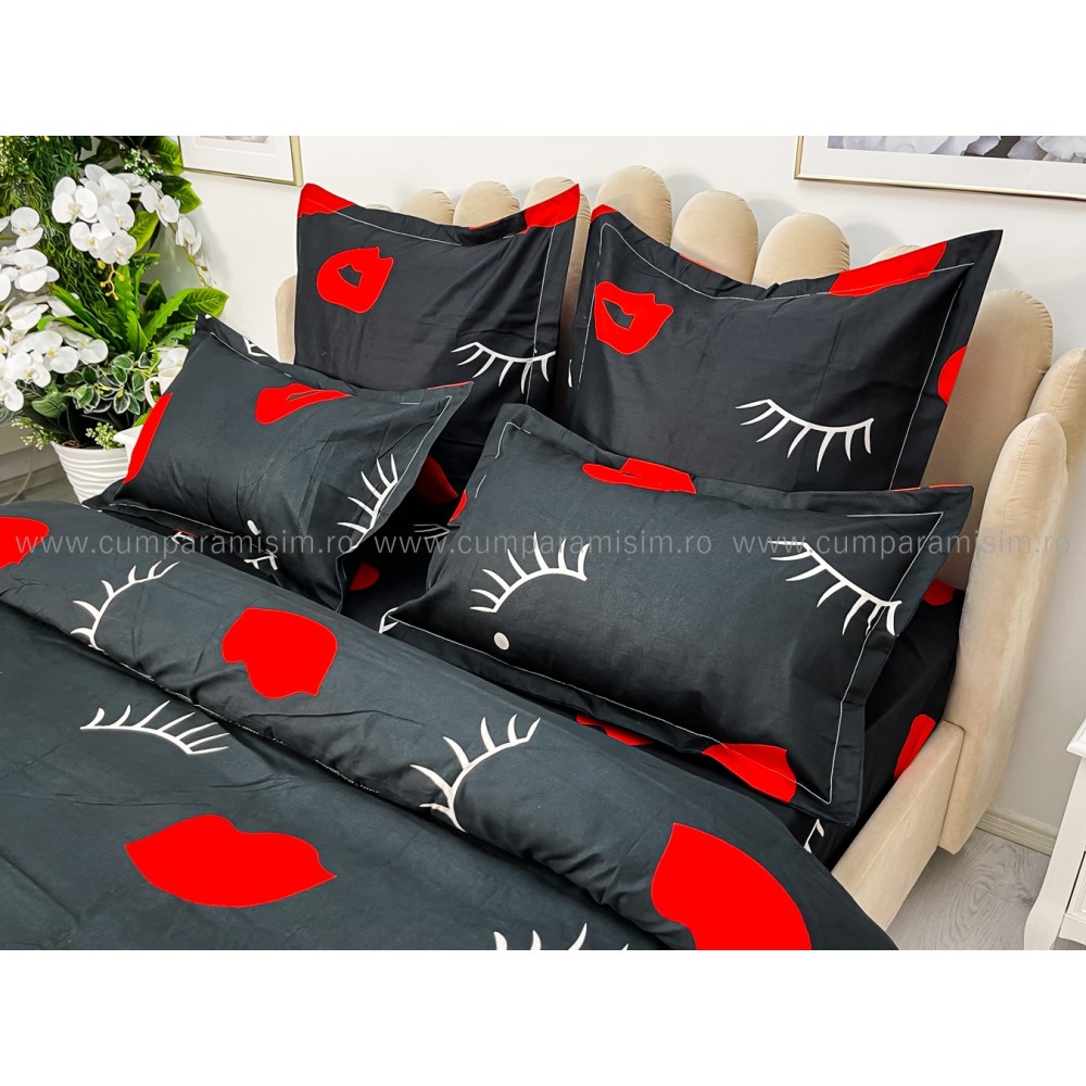 Lenjerie pat dublu, FINET, 6 piese, Alb-Negru, gene si buze, Alti producatori, cod produs: YNF85