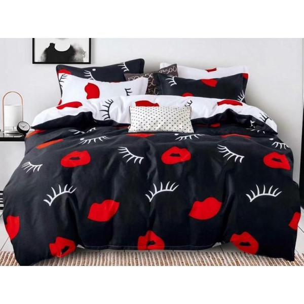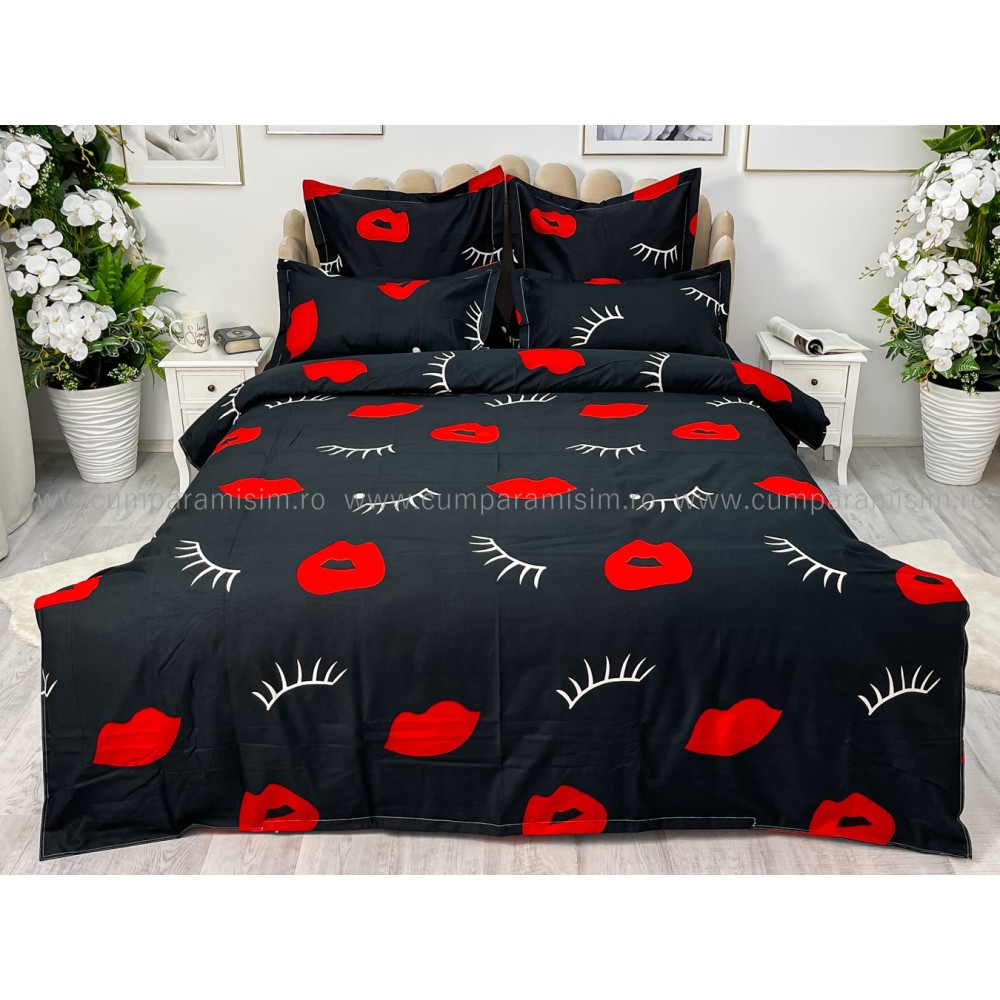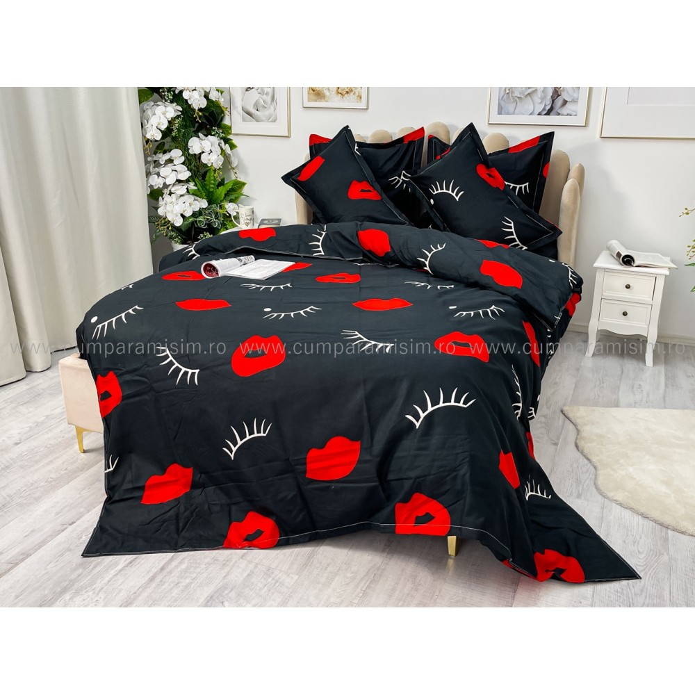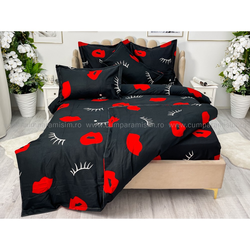 Lenjerie pat dublu, FINET, 6 piese, Alb-Negru, gene si buze, Alti producatori, cod produs: YNF85
