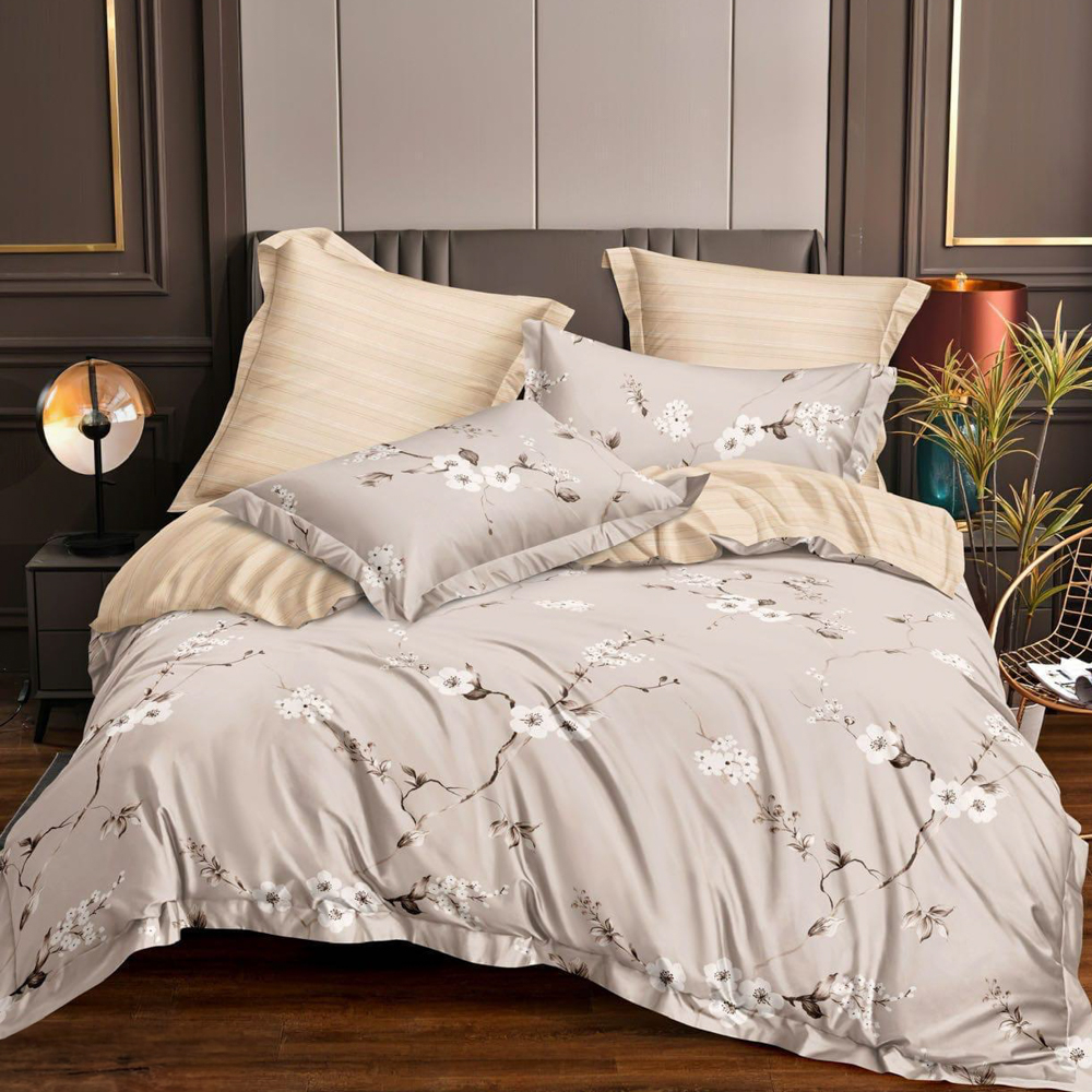 Lenjerie Pat Dublu, FINET, 6 piese, Bej, flori, East Romania, cod produs: EST-FN-246
