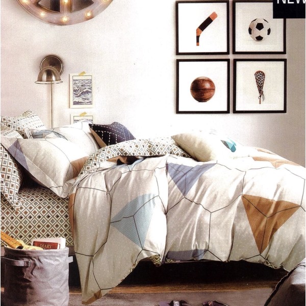 Lenjerie pat dublu, FINET, 6 piese, Bej, forme geometrice, Alti producatori, cod produs: YNF38