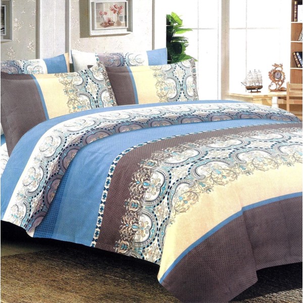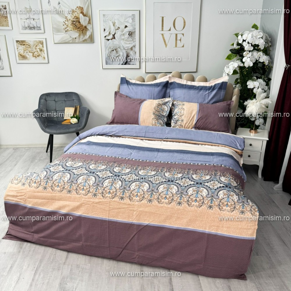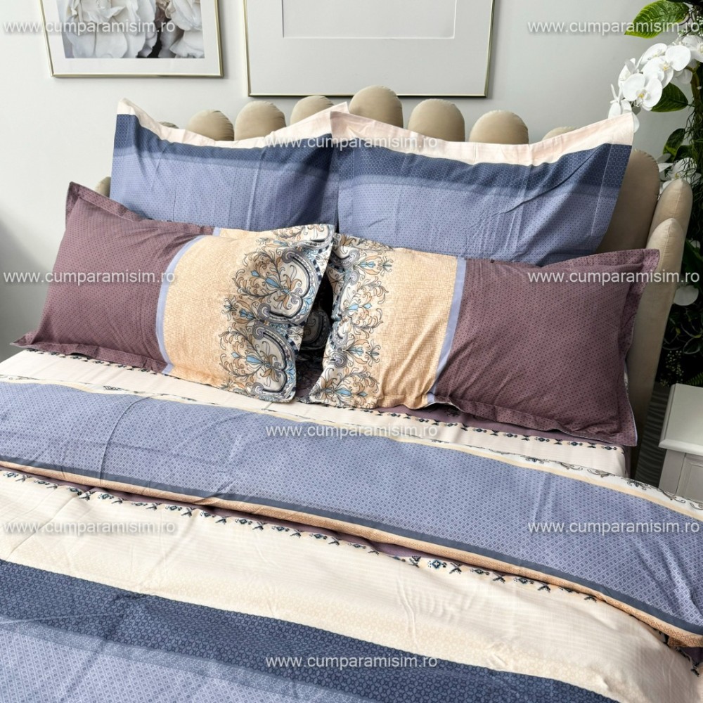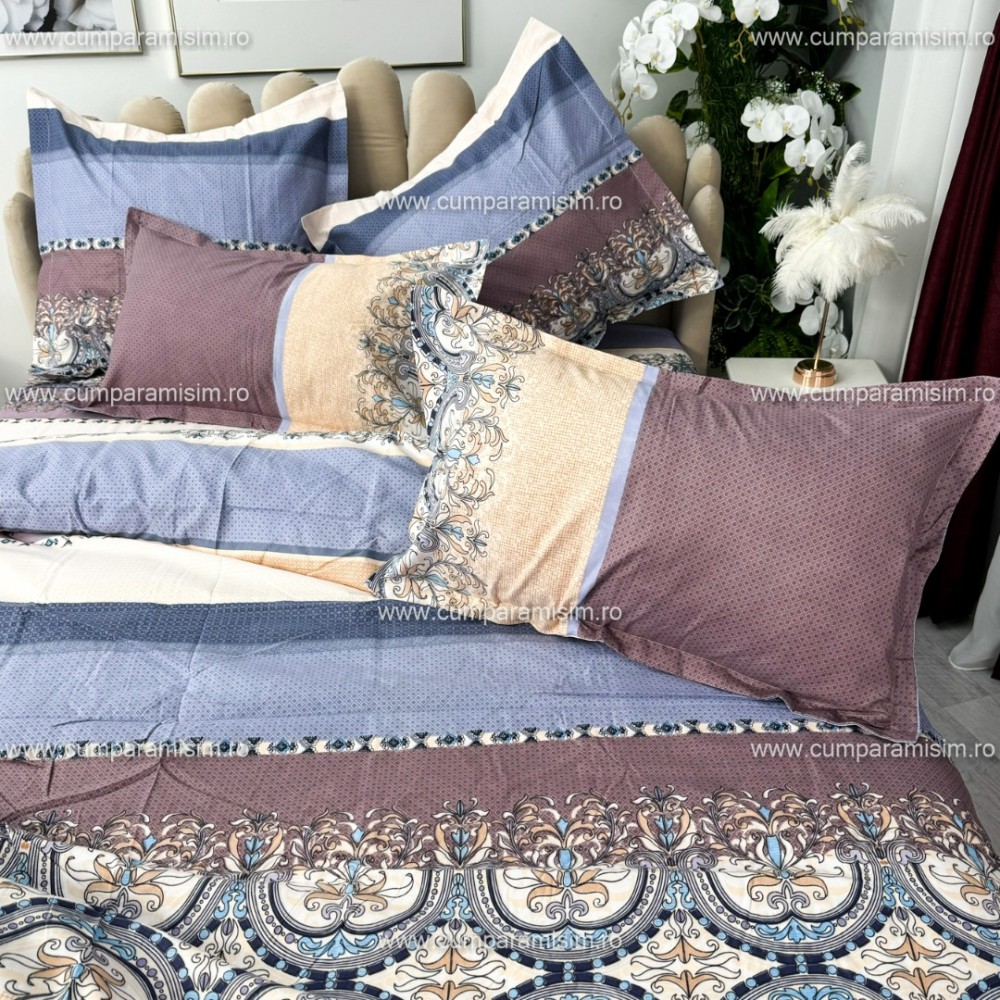 Lenjerie pat dublu, FINET, 6 piese, Bej-Albastru, model oriental, Alti producatori, cod produs: YNF69