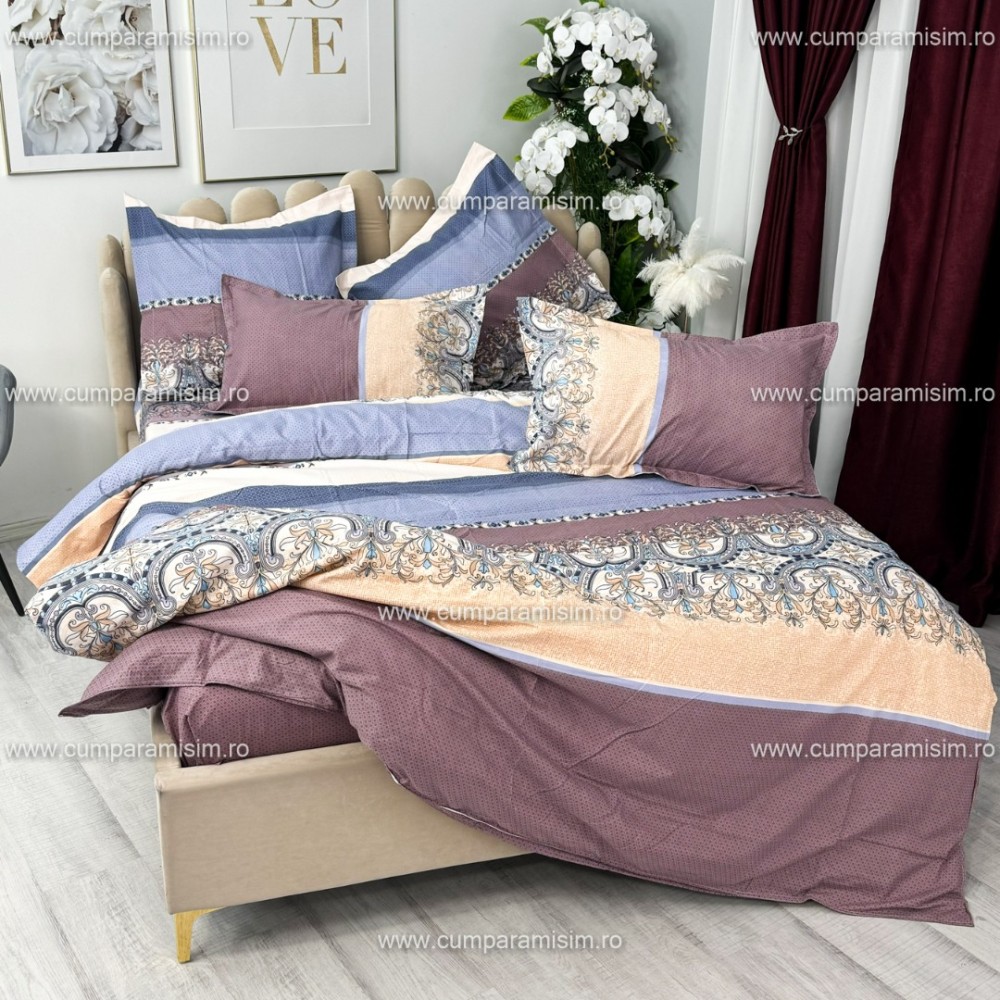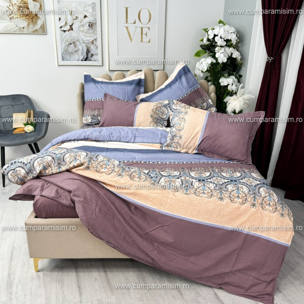 Iti recomandam cu incredere aceasta lenjerie pentru pat dublu cu 6 piese, confectionata din 100% bumbac, tesatura tip finet, ce cu siguranta va asigura esteticul perfect pentru dormitorul tau, prin design-ul modern si culorile rafinate.
