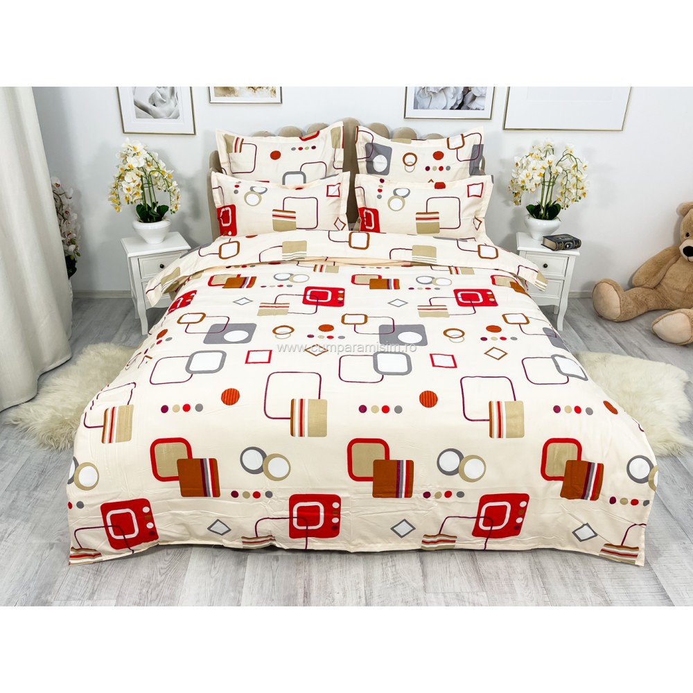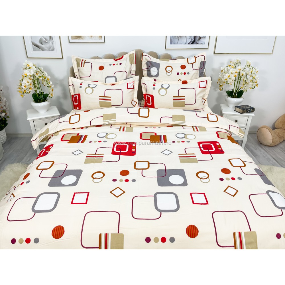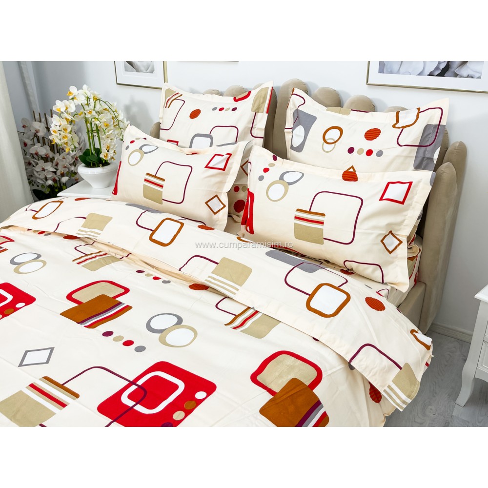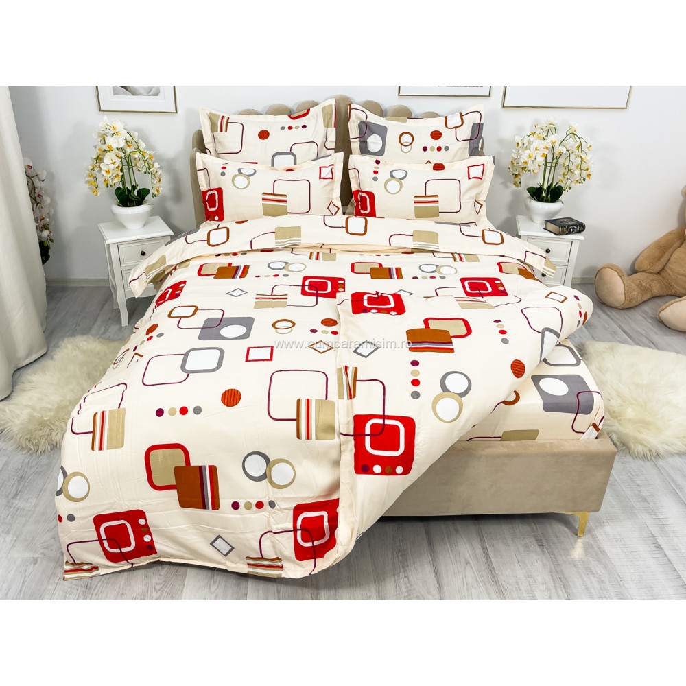 Lenjerie pat dublu, FINET, 6 piese, Bej-Multicolor, forme geometrice, Alti producatori, cod produs: YNF1
