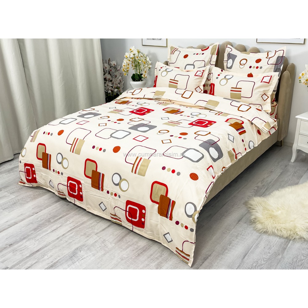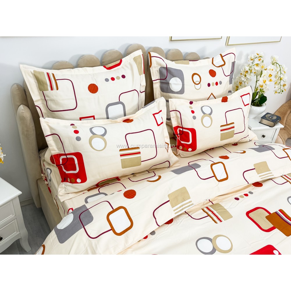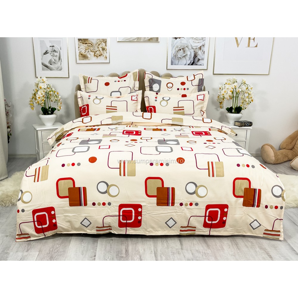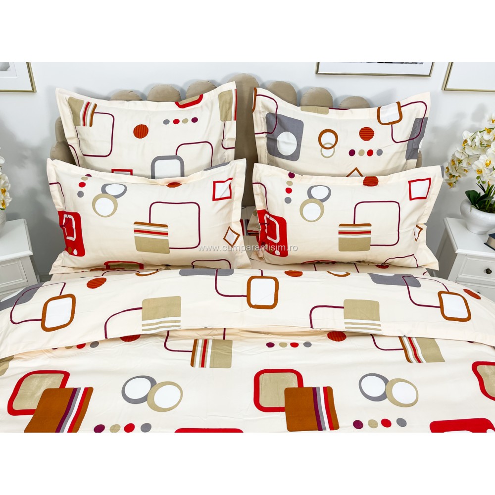 Lenjerie pat dublu, FINET, 6 piese, Bej-Multicolor, forme geometrice, Alti producatori, cod produs: YNF1