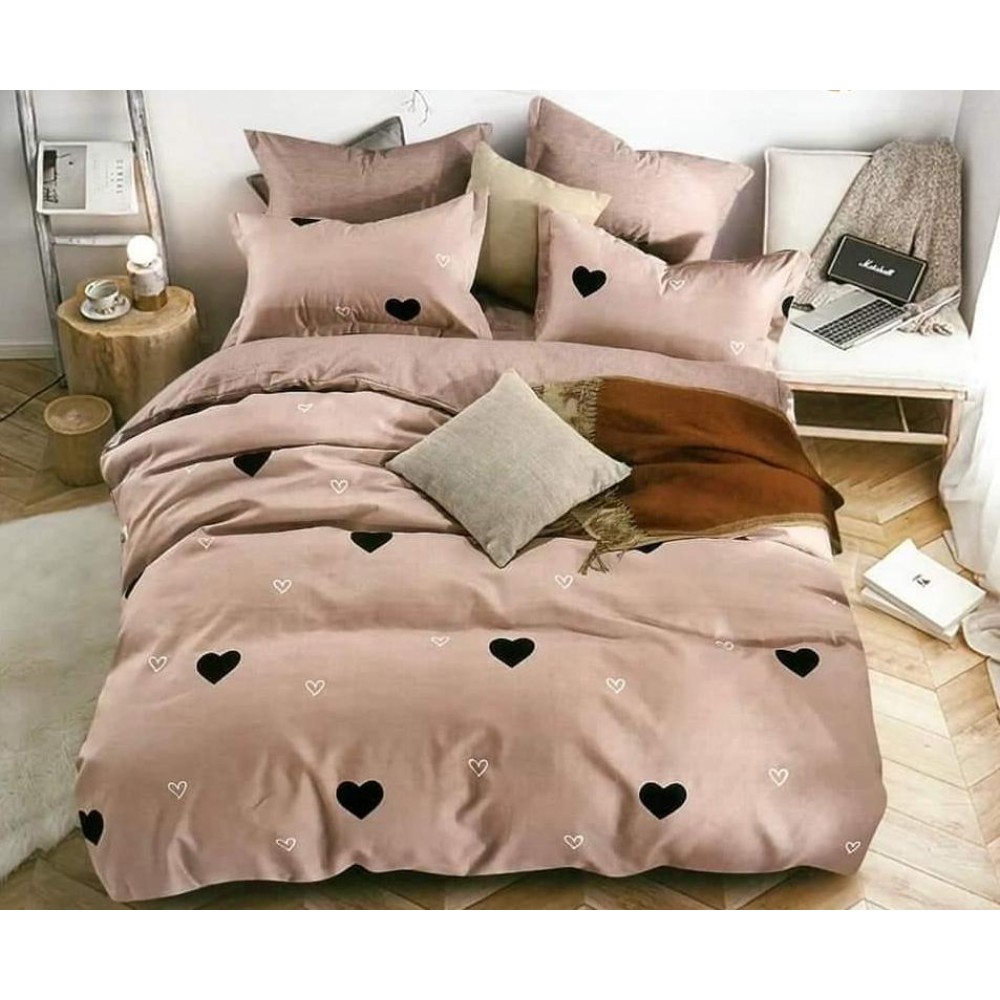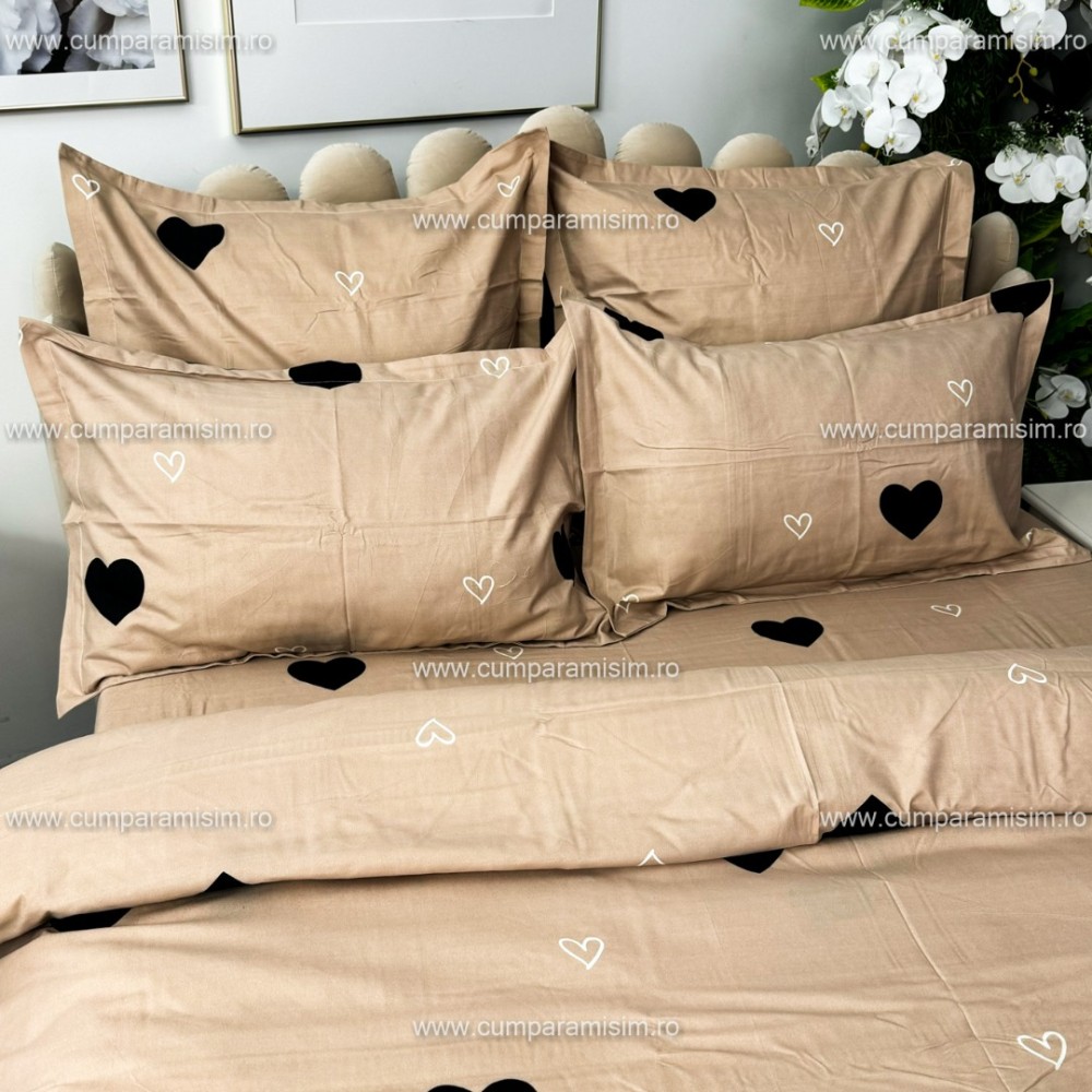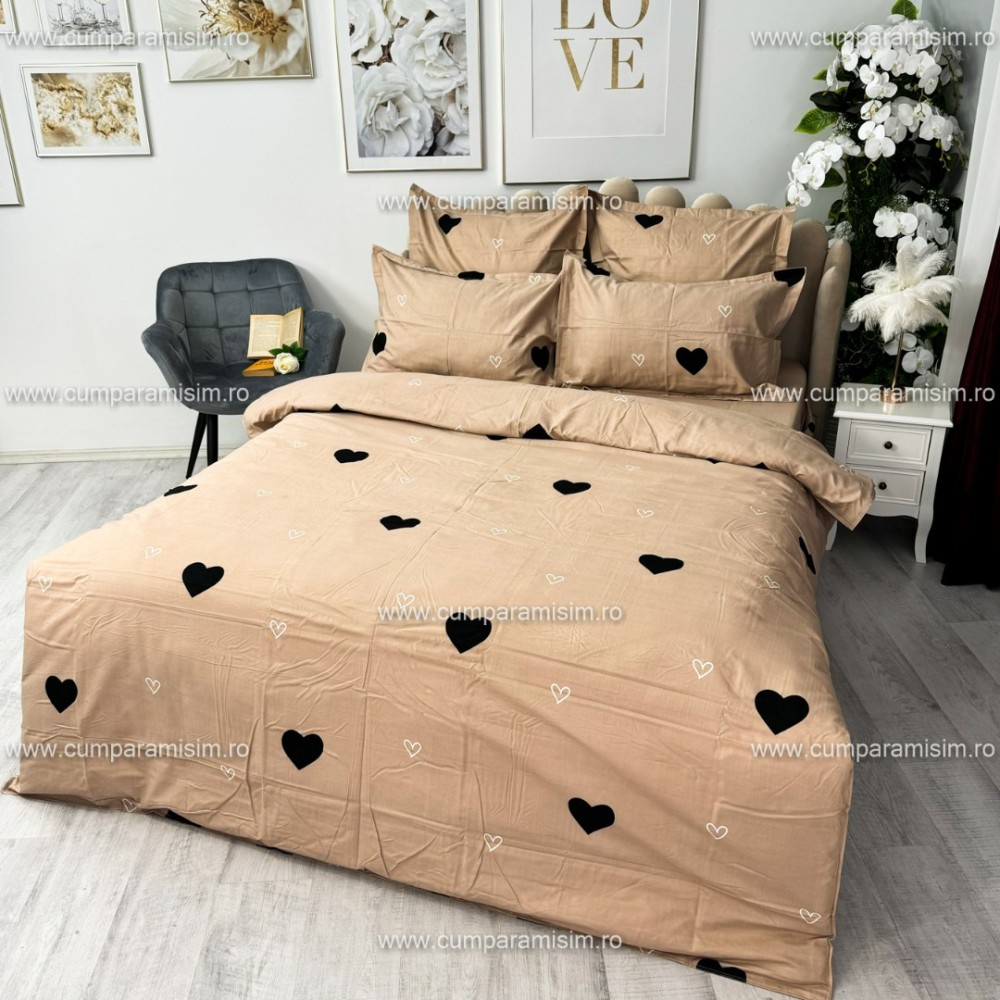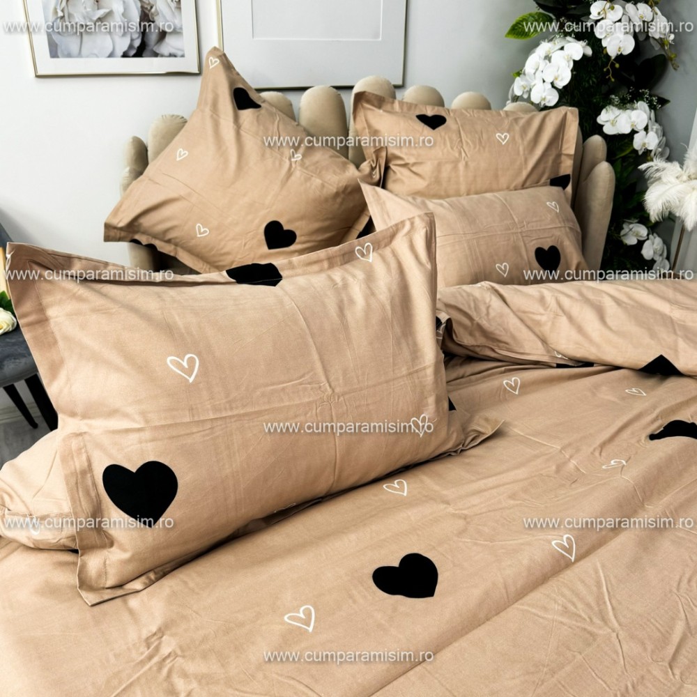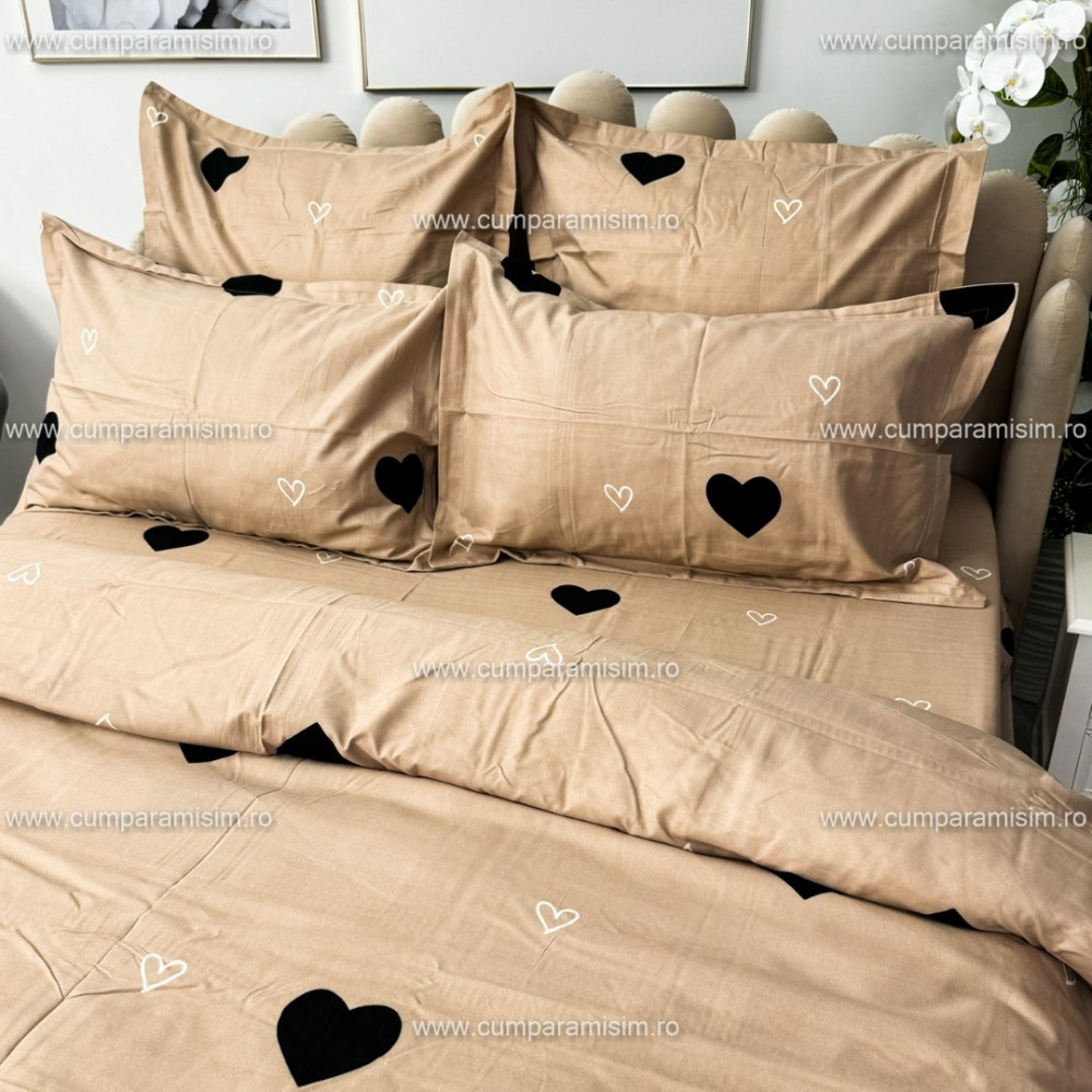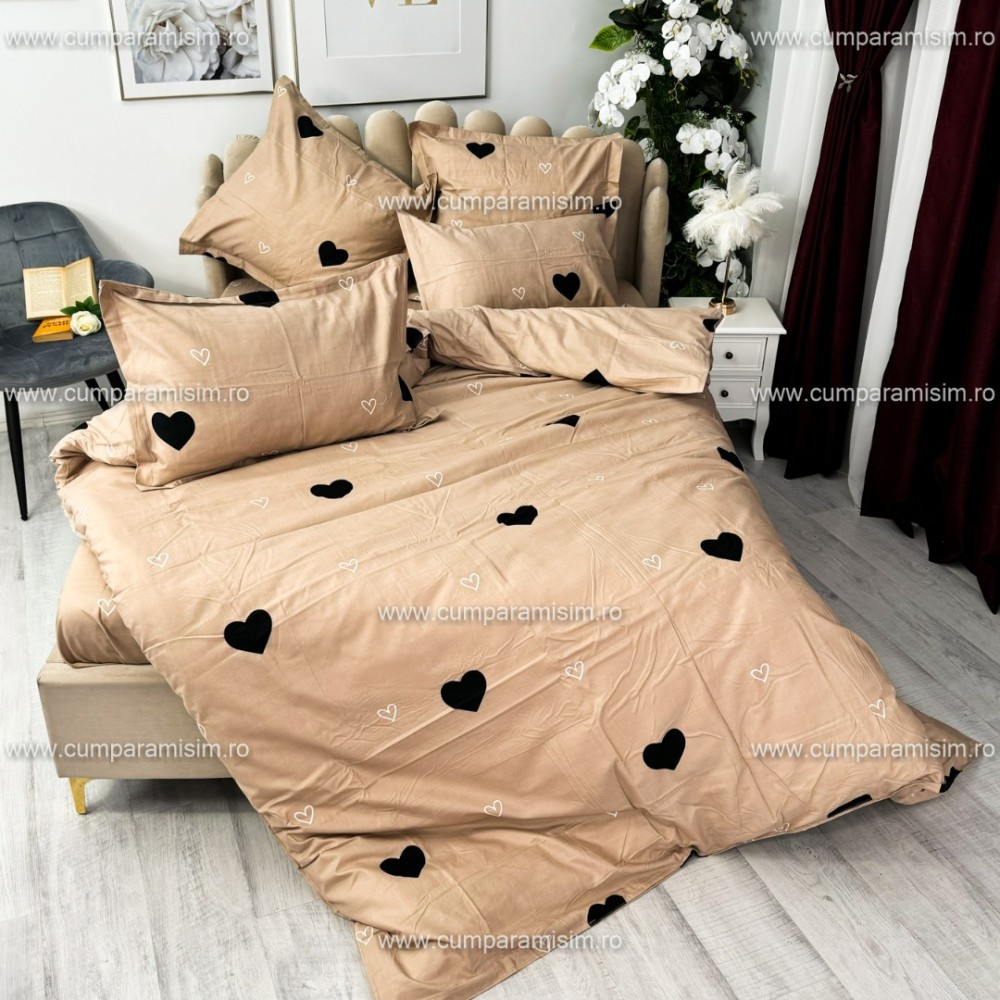 Lenjerie pat dublu, FINET, 6 piese, Bej-Negru, inimioare, Alti producatori, cod produs: YNF23