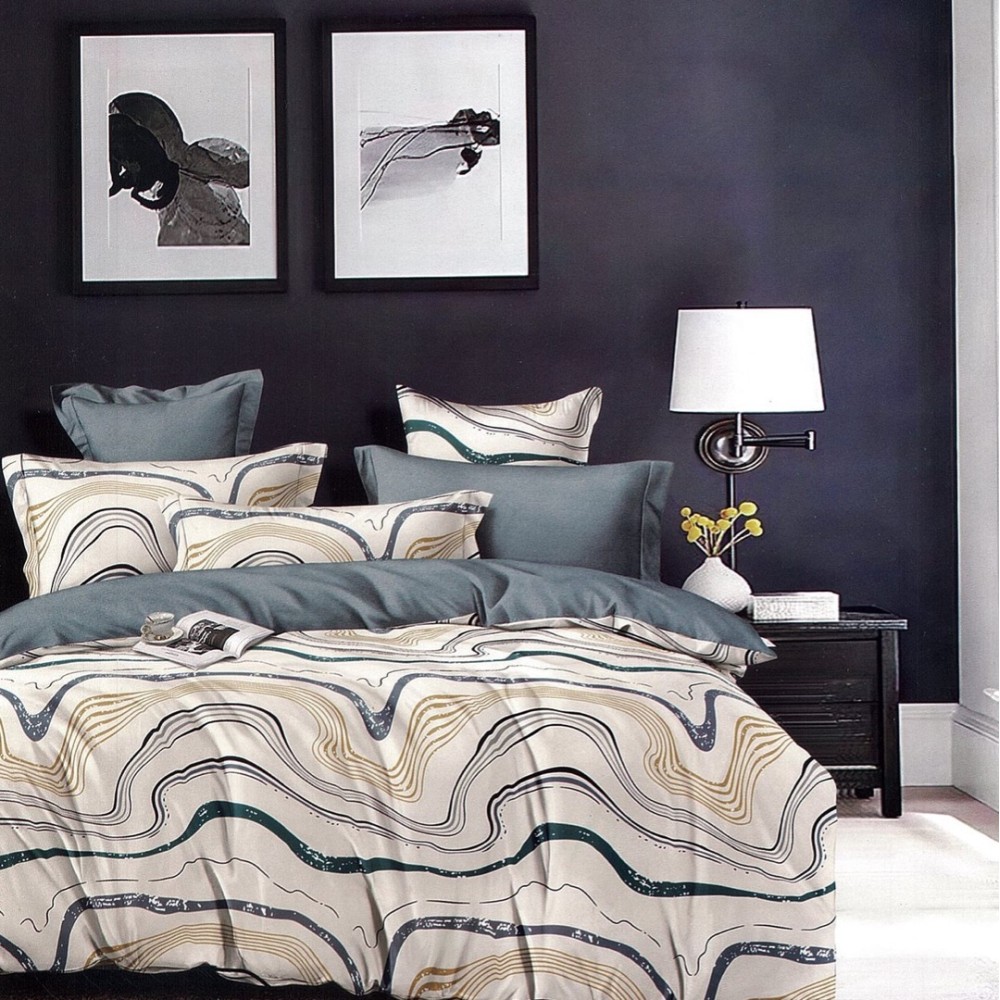 Lenjerie pat dublu, FINET, 6 piese, Bej-Turquoise, abstract, Johny Home Pucioasa, cod produs: DKF92